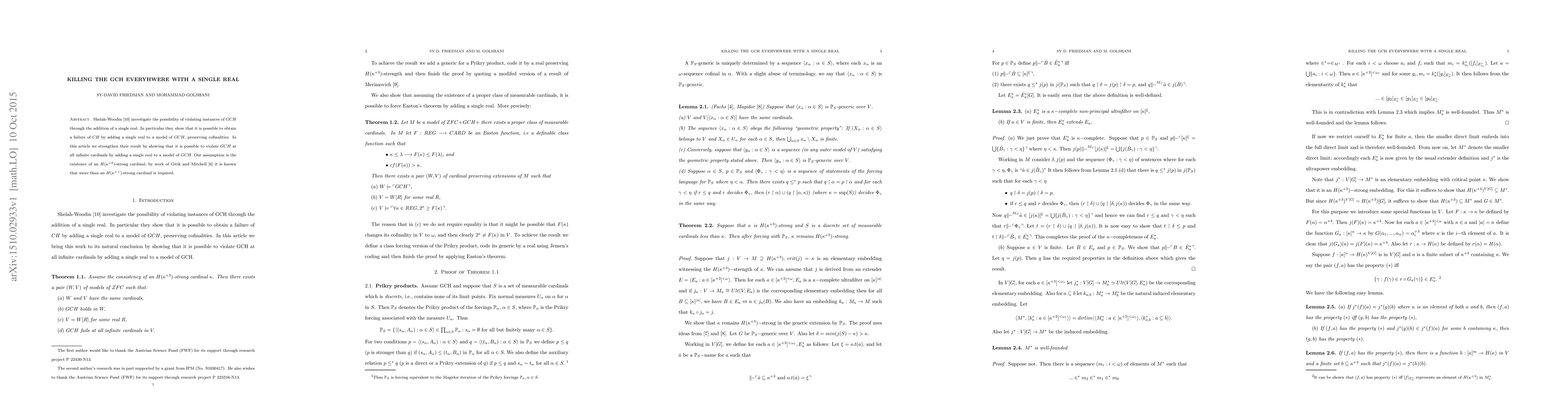 Shelah-Woodin investigate the possibility of violating instances of $GCH$ through the addition of a single real. In particular they show that it is possible to obtain a failure of $CH$ by adding a single real to a model of $GCH$, preserving cofinalities. In this article we strengthen their result by showing that it is possible to violate $GCH$ at all infinite cardinals by adding a single real to a model of $GCH.$ Our assumption is the existence of an $H(\kappa^{+3})$-strong cardinal, by work of Gitik and Mitchell it is known that more than an $H(\kappa^{++})$-strong cardinal is required.