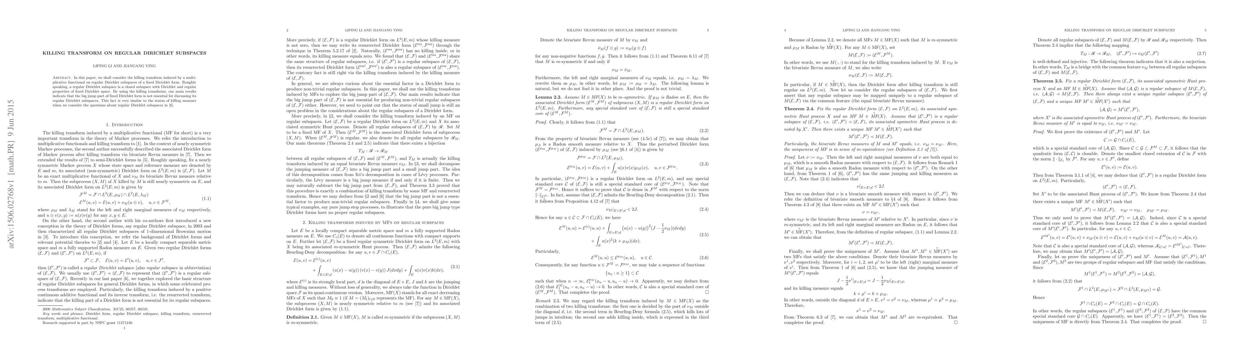 This paper explores the killing transform induced by a multiplicative functional on regular Dirichlet subspaces within a fixed Dirichlet form, demonstrating that the big jump part of the Dirichlet form is not crucial for discussing these subspaces. This finding parallels the role of the killing measure in related studies.