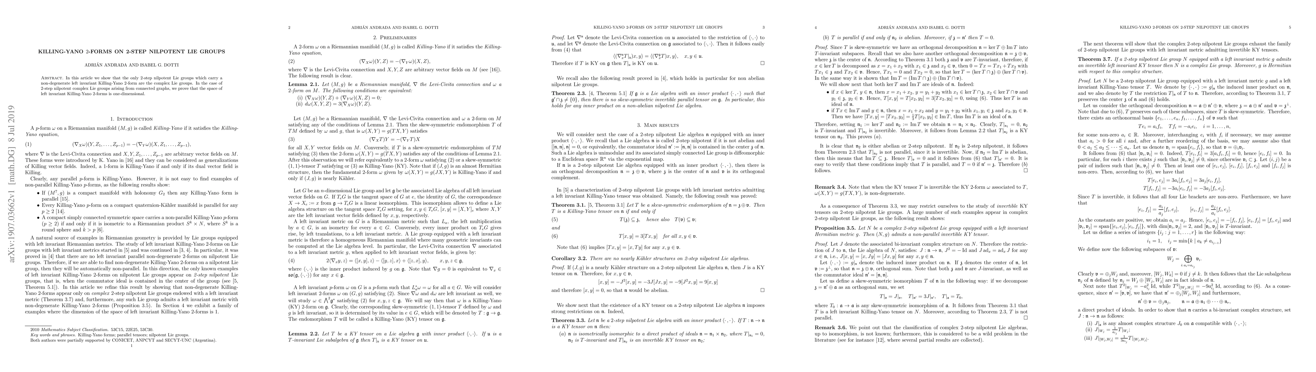 This paper demonstrates that only complex Lie groups among 2-step nilpotent Lie groups possess non-degenerate left invariant Killing-Yano 2-forms, and for such complex Lie groups derived from connected graphs, the dimension of the space of these 2-forms is one.