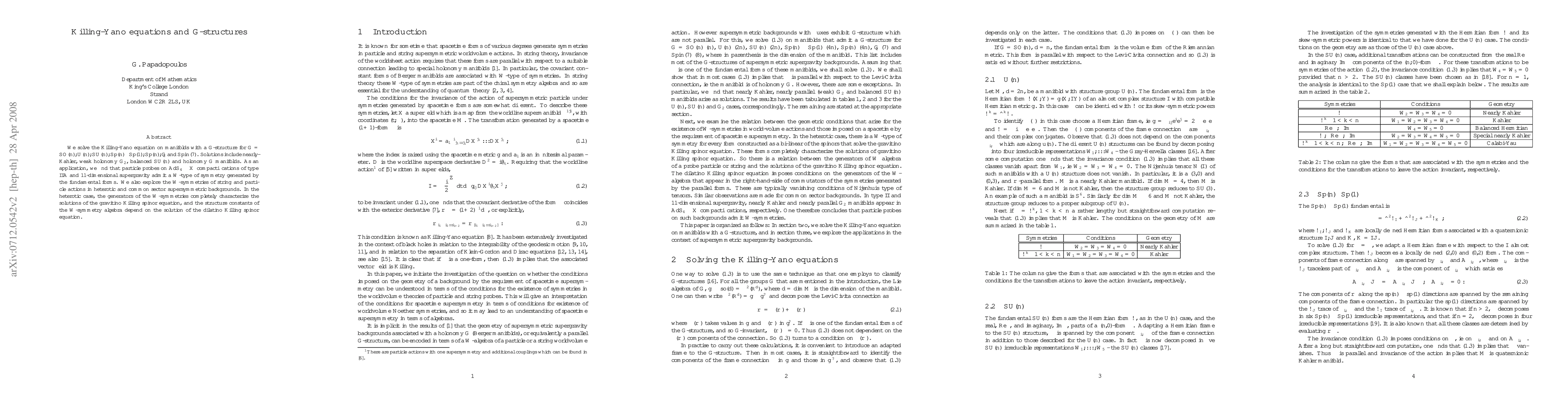 We solve the Killing-Yano equation on manifolds with a $G$-structure for $G=SO(n), U(n), SU(n), Sp(n)\cdot Sp(1), Sp(n), G_2$ and $Spin(7)$. Solutions include nearly-K\"ahler, weak holonomy $G_2$, balanced SU(n) and holonomy $G$ manifolds. As an application, we find that particle probes on $AdS_4\times X$ compactifications of type IIA and 11-dimensional supergravity admit a ${\cal W}$-type of symmetry generated by the fundamental forms. We also explore the ${\cal W}$-symmetries of string and particle actions in heterotic and common sector supersymmetric backgrounds. In the heterotic case, the generators of the ${\cal W}$-symmetries completely characterize the solutions of the gravitino Killing spinor equation, and the structure constants of the ${\cal W}$-symmetry algebra depend on the solution of the dilatino Killing spinor equation.