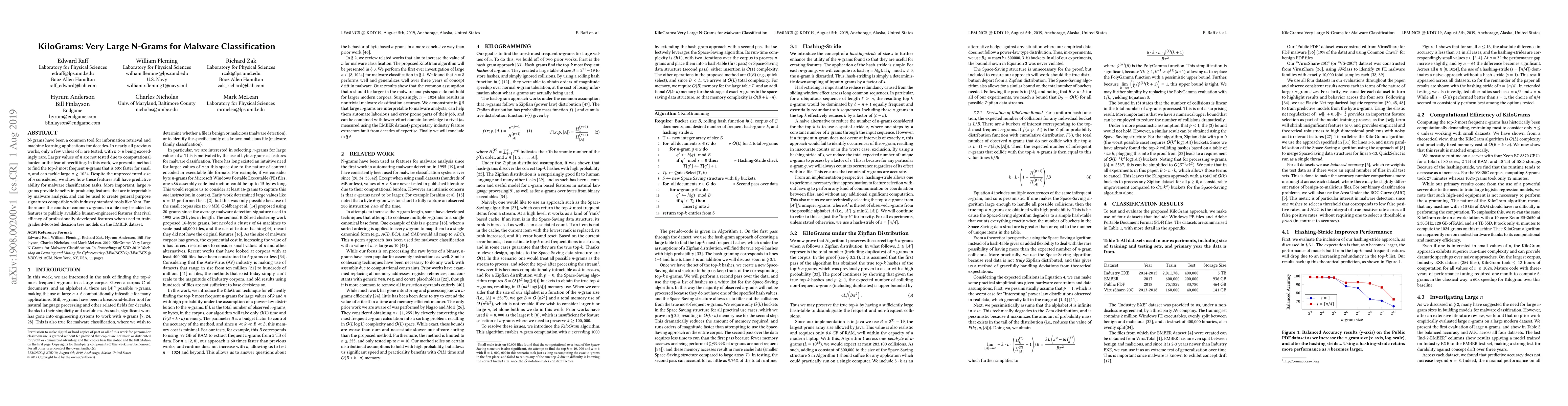 This paper introduces a method for efficiently identifying very large $n$-grams ($n\geq1024$) that maintains predictive power for malware classification, overcoming computational challenges. These large $n$-grams enhance interpretability and can generate signatures compatible with tools like Yara, while also performing competitively with professionally-developed features in gradient-boosted decision tree models.
