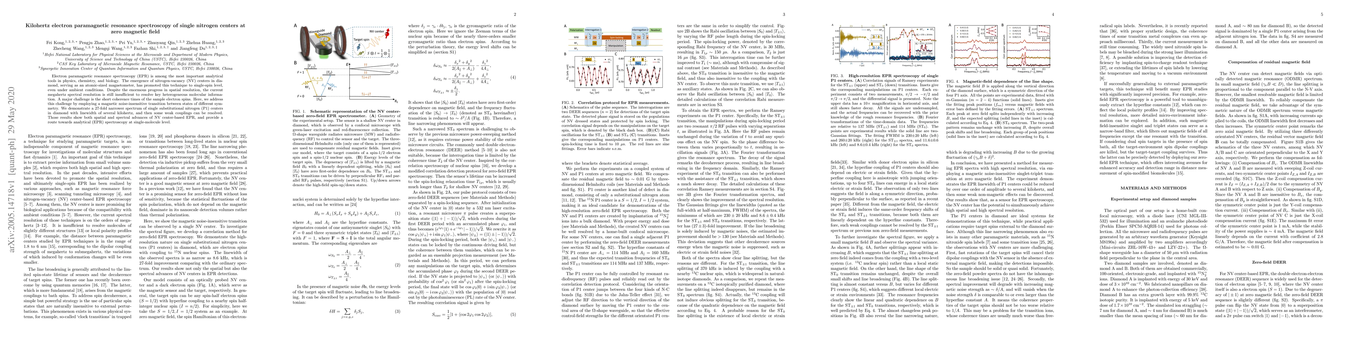 This paper demonstrates kilohertz electron paramagnetic resonance (EPR) spectroscopy of single nitrogen centers in diamond, achieving a 27-fold narrower spectrum and resolving weak couplings, thus advancing both spatial and spectral resolution of NV center-based EPR.