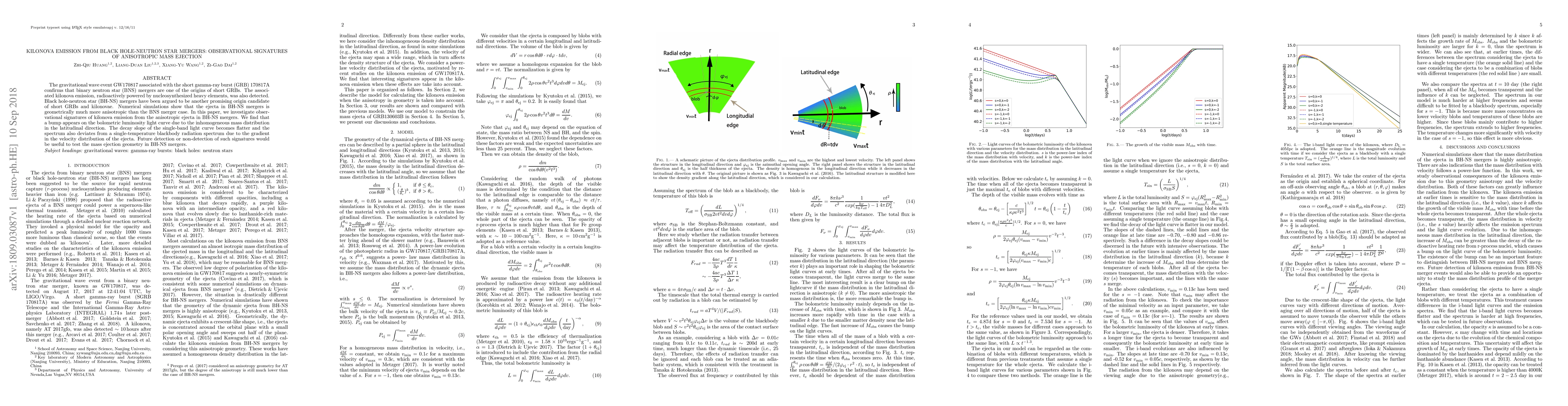This paper investigates the observational signatures of kilonova emission from black hole-neutron star mergers, finding that anisotropic ejecta leads to a bump in the bolometric luminosity light curve and a flatter decay slope, along with spectral deviations from a single-temperature blackbody. Future detections of these signatures could test the mass ejection geometry in such mergers.