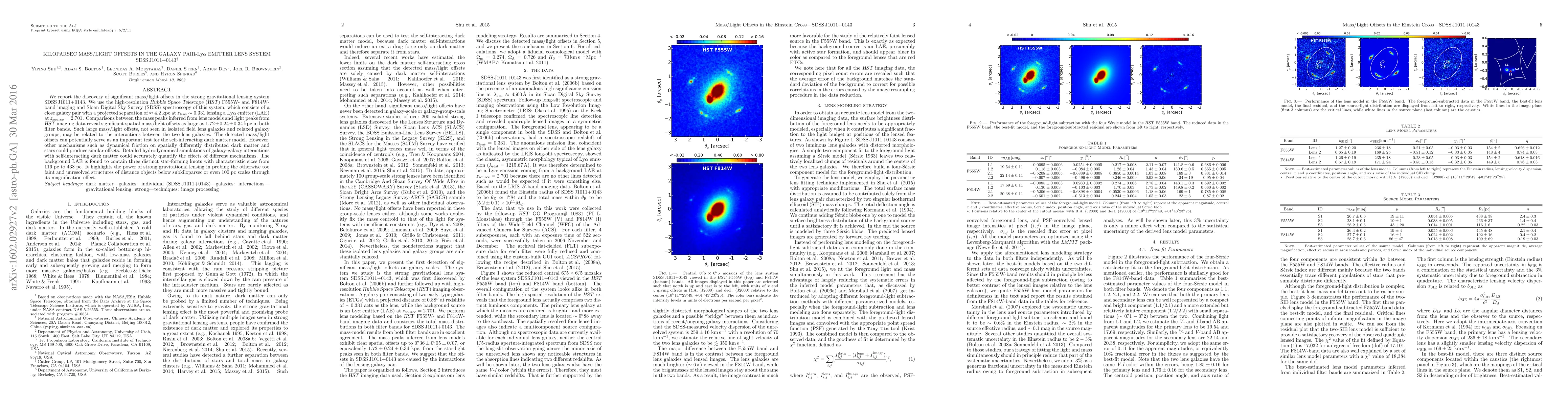 We report the discovery of significant mass/light offsets in the strong gravitational lensing system SDSS\,J1011$+$0143. We use the high-resolution \textsl{Hubble Space Telescope} (\textsl{HST}) F555W- and F814W-band imaging and Sloan Digital Sky Survey (SDSS) spectroscopy of this system, which consists of a close galaxy pair with a projected separation of $\approx 4.2$ kpc at $z_{\rm lens} \sim 0.331$ lensing a Ly$\alpha$ emitter (LAE) at $z_{\rm source} = 2.701$. Comparisons between the mass peaks inferred from lens models and light peaks from \textsl{HST} imaging data reveal significant spatial mass/light offsets as large as $1.72 \pm 0.24 \pm 0.34$ kpc in both filter bands. Such large mass/light offsets, not seen in isolated field lens galaxies and relaxed galaxy groups, may be related to the interactions between the two lens galaxies. The detected mass/light offsets can potentially serve as an important test for the self-interacting dark matter model. However, other mechanisms such as dynamical friction on spatially differently distributed dark matter and stars could produce similar offsets. Detailed hydrodynamical simulations of galaxy-galaxy interactions with self-interacting dark matter could accurately quantify the effects of different mechanisms. The background LAE is found to contain three distinct star-forming knots with characteristic sizes from 116 pc to 438 pc. It highlights the power of strong gravitational lensing in probing the otherwise too faint and unresolved structures of distance objects below subkiloparsec or even 100 pc scales through its magnification effect.
