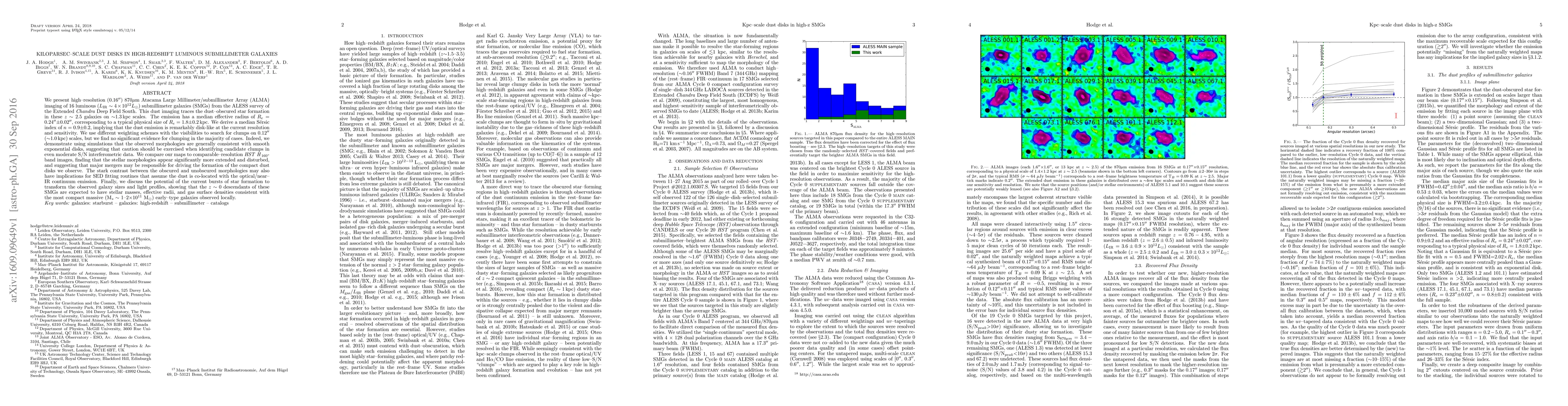 This study uses ALMA to reveal kiloparsec-scale dust disks in high-redshift submillimeter galaxies, finding they are disk-like and not clumpy. The dust disks contrast with the more extended and disturbed stellar morphologies, suggesting major mergers drive their formation.