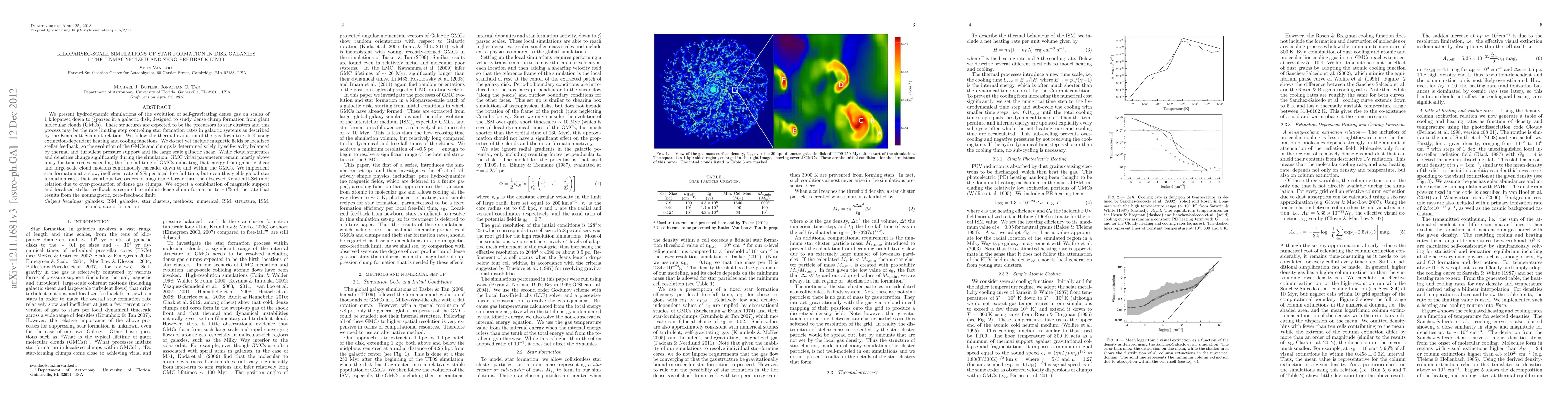 This paper presents hydrodynamic simulations of dense gas evolution in disk galaxies, focusing on the formation of giant molecular clouds and clumps without magnetic fields or stellar feedback. The study finds that self-gravity, thermal, and turbulent pressures drive clump formation, leading to star formation rates much higher than observed, suggesting magnetic fields and stellar feedback are needed to regulate this process.