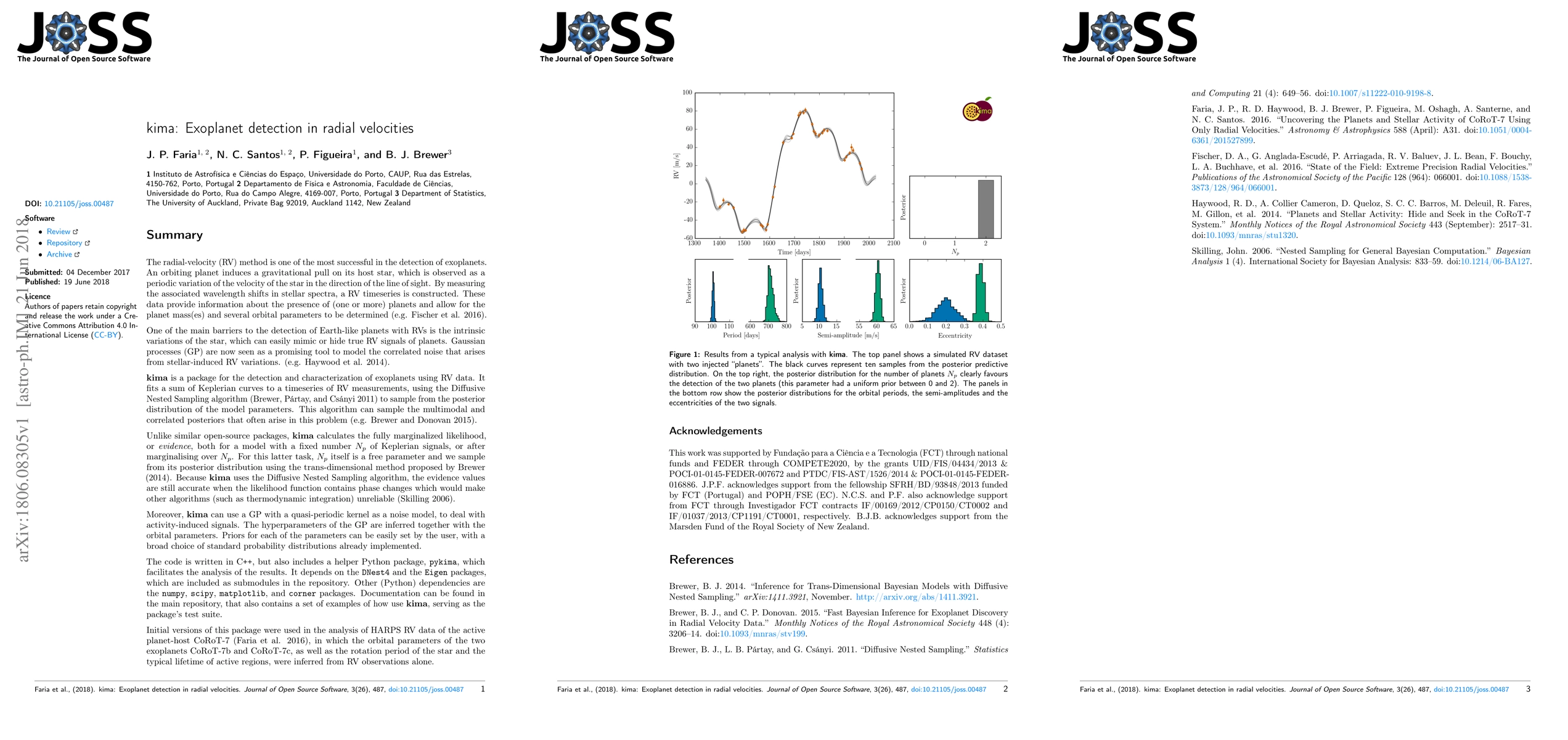 The radial-velocity (RV) method is one of the most successful in the detection of exoplanets, but is hindered by the intrinsic RV variations of the star, which can easily mimic or hide true planetary signals. kima is a package for the detection and characterization of exoplanets using RV data. It fits a sum of Keplerian curves to a timeseries of RV measurements and calculates the evidence for models with a fixed number Np of Keplerian signals, or after marginalising over Np. Moreover, kima can use a GP with a quasi-periodic kernel as a noise model, to deal with activity-induced signals. The hyperparameters of the GP are inferred together with the orbital parameters. The code is written in C++, but includes a helper Python package, pykima, which facilitates the analysis of the results.