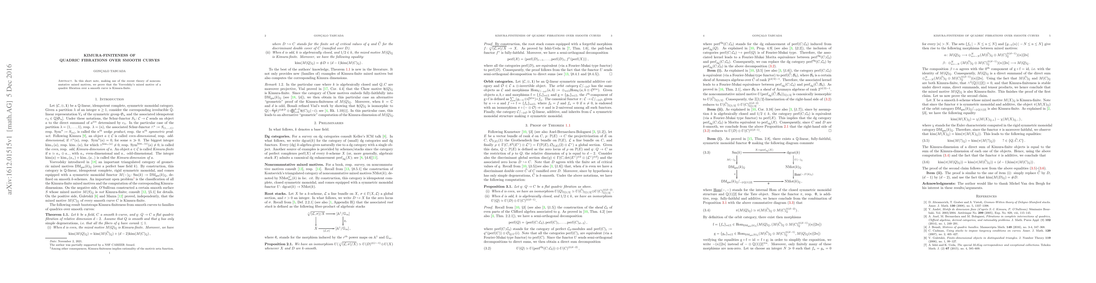 Summary: This paper utilizes the theory of noncommutative mixed motives to demonstrate that the mixed motive of a quadric fibration over a smooth curve satisfies Kimura-finiteness, a significant result in algebraic geometry.
