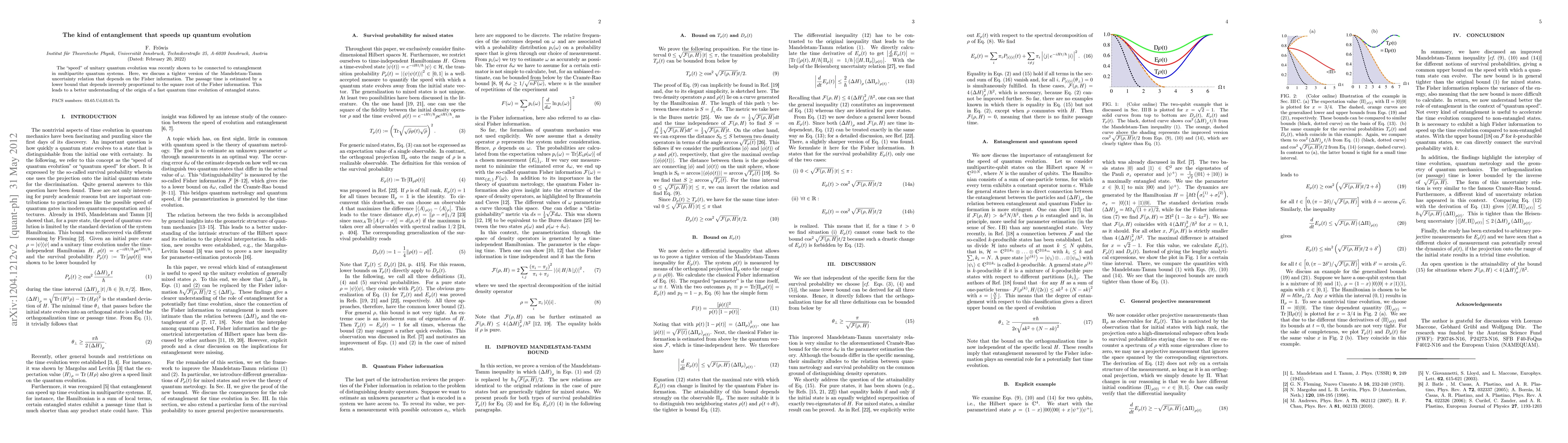 The "speed" of unitary quantum evolution was recently shown to be connected to entanglement in multipartite quantum systems. Here, we discuss a tighter version of the Mandelstam-Tamm uncertainty relation that depends on the Fisher information. The passage time is estimated by a lower bound that depends inversely proportional to the square root of the Fisher information. This leads to a better understanding of the origin of a fast quantum time evolution of entangled states.