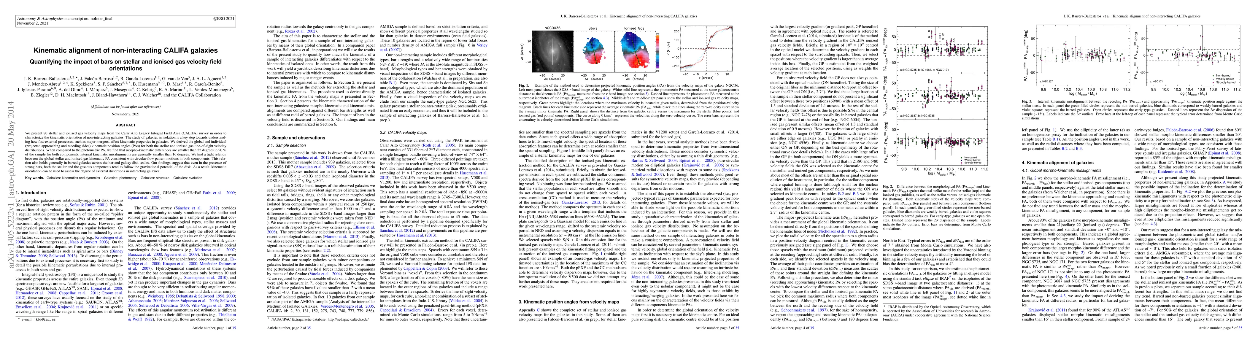 This study analyzes 80 CALIFA galaxies to quantify kinematic alignment and the impact of bars on stellar and ionised gas velocity fields. It finds minimal morpho-kinematic differences and a tight relation between stellar and gas kinematic position angles, suggesting that both components follow the gravitational potential of the disk even in barred galaxies.