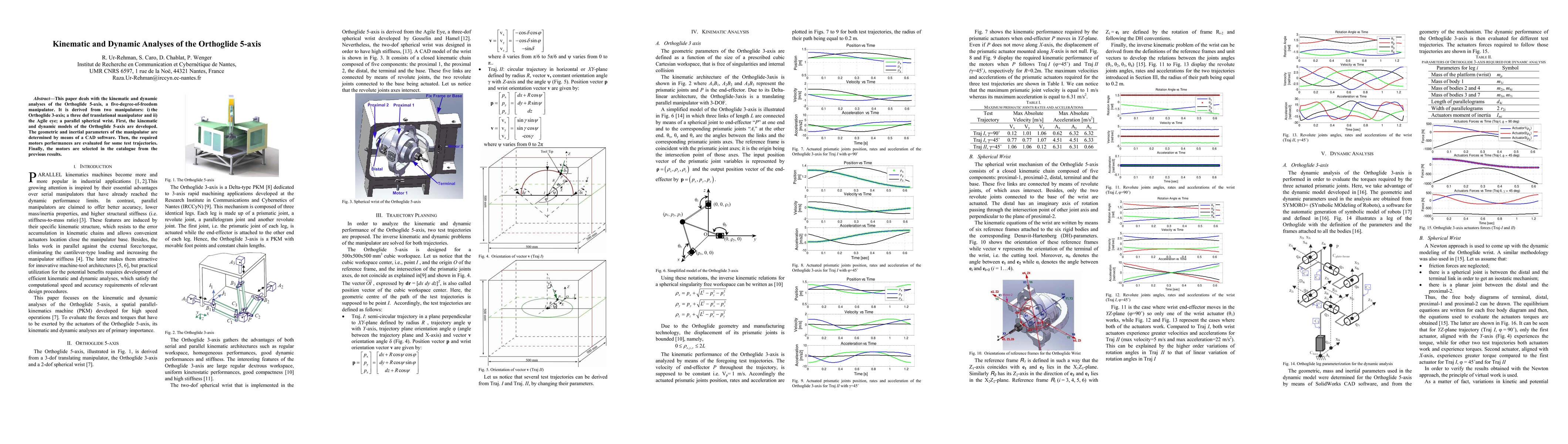 This paper develops kinematic and dynamic models for the Orthoglide 5-axis manipulator, derived from a 3-axis translational manipulator and a parallel spherical wrist. Motor performance evaluations and selection are conducted based on geometric and inertial parameters determined via CAD software.