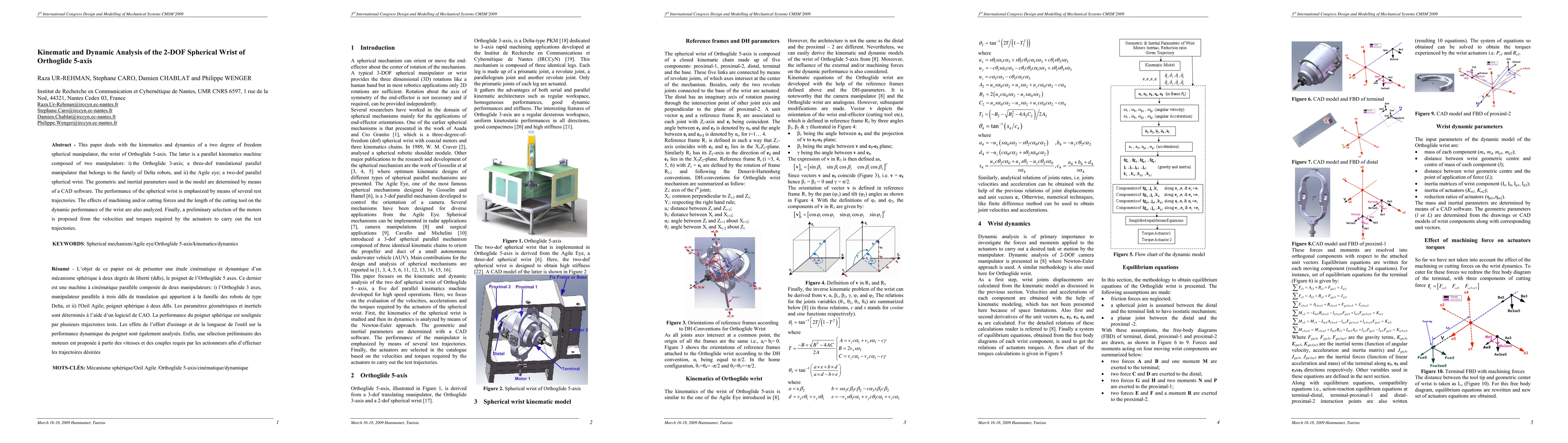 This paper analyzes the kinematics and dynamics of the 2-DOF spherical wrist of Orthoglide 5-axis, a parallel kinematics machine, focusing on its performance through test trajectories and examining the impact of machining forces on its dynamic performance. A preliminary motor selection is proposed based on the required velocities and torques.