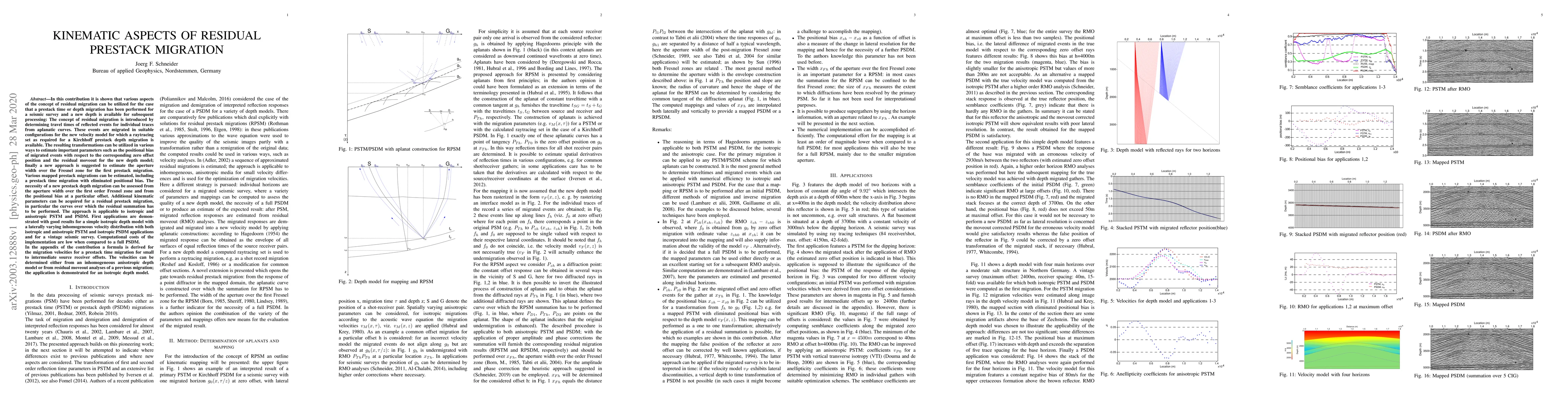 In this contribution it is shown that various aspects of the concept of residual migration can be utilized for the case that a prestack time or depth migration has been performed for a seismic survey and a new depth is available: The concept of residual migration is introduced by determining travel times of reflected events for individual traces from aplanatic curves. These events are migrated in suitable configurations for the new velocity model for which a raytracing set as required for a Kirchhoff prestack depth migration is available. The resulting transformations can be utilized in various ways to estimate important parameters such as the positional bias of migrated events with respect to the corresponding zero offset position and the residual moveout for the new depth model ; finally a new approach is suggested to estimate the aperture width over the Fresnel zone for the first prestack migration. Various mapped prestack migrations can be estimated, including a prestack time migration with eliminated positional bias. The necessity of a new prestack depth migration can be assessed from the aperture width over the first order Fresnel zone and from the positional bias at a particular offset. Additional kinematic parameters can be acquired for a residual prestack migration, in particular the curves over which the residual summation has to be performed. The approach is applicable to isotropic and anisotropic PSTM and PSDM. Computational costs of the implementation are low when compared to a full PSDM. In the appendix a formula is derived for the migration velocities for a prestack time migration for small to intermediate source receiver offsets. The velocities can be determined either from an inhomogeneous anisotropic depth model or from residual moveout analyses of a previous migration.