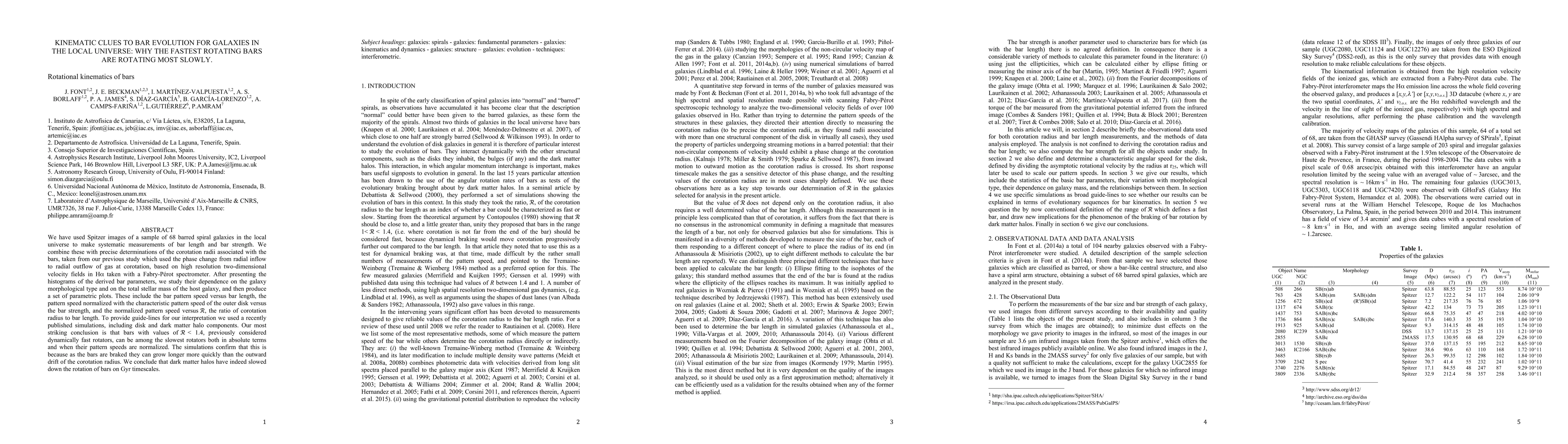We have used Spitzer images of a sample of 68 barred spiral galaxies in the local universe to make systematic measurements of bar length and bar strength. We combine these with precise determinations of the corotation radii associated with the bars, taken from our previous study which used the phase change from radial inflow to radial outflow of gas at corotation, based on high resolution two-dimensional velocity fields in H{\alpha} taken with a Fabry-P\'erot spectrometer. After presenting the histograms of the derived bar parameters, we study their dependence on the galaxy morphological type and on the total stellar mass of the host galaxy, and then produce a set of parametric plots. These include the bar pattern speed versus bar length, the pattern speed normalized with the characteristic pattern speed of the outer disk versus the bar strength, and the normalized pattern speed versus R, the ratio of corotation radius to bar length. To provide guide-lines for our interpretation we used a recently published simulations, including disk and dark matter halo components. Our most striking conclusion is that bars with values of R < 1.4, previously considered dynamically fast rotators, can be among the slowest rotators both in absolute terms and when their pattern speeds are normalized. The simulations confirm that this is because as the bars are braked they can grow longer more quickly than the outward drift of the corotation radius. We conclude that dark matter halos have indeed slowed down the rotation of bars on Gyr timescales.