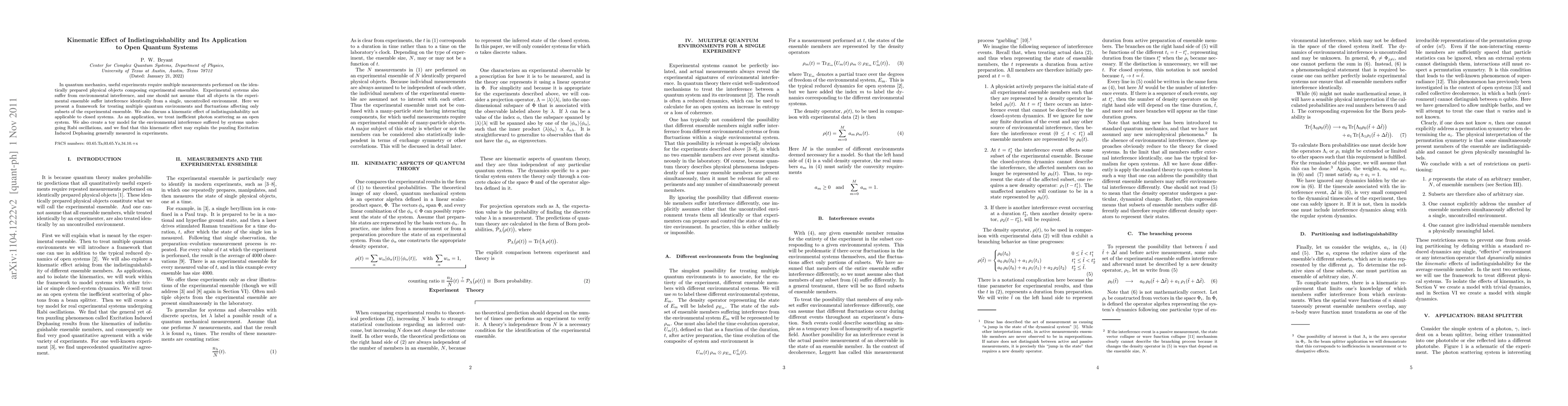 In quantum mechanics, useful experiments require multiple measurements performed on the identically prepared physical objects composing experimental ensembles. Experimental systems also suffer from environmental interference, and one should not assume that all objects in the experimental ensemble suffer interference identically from a single, uncontrolled environment. Here we present a framework for treating multiple quantum environments and fluctuations affecting only subsets of the experimental ensemble. We also discuss a kinematic effect of indistinguishability not applicable to closed systems. As an application, we treat inefficient photon scattering as an open system. We also create a toy model for the environmental interference suffered by systems undergoing Rabi oscillations, and we find that this kinematic effect may explain the puzzling Excitation Induced Dephasing generally measured in experiments.