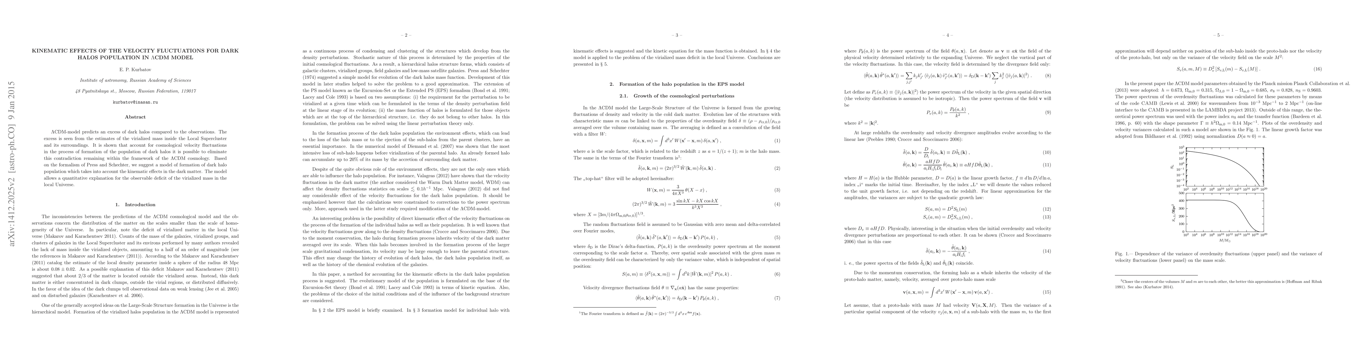 The research proposes a model incorporating kinematic effects of cosmological velocity fluctuations in dark matter halos' formation within the $Lambda$CDM cosmology. This model, based on Press-Schechter formalism, explains the observed deficit of virialized mass in the local universe, resolving the discrepancy between predicted and observed dark halos.