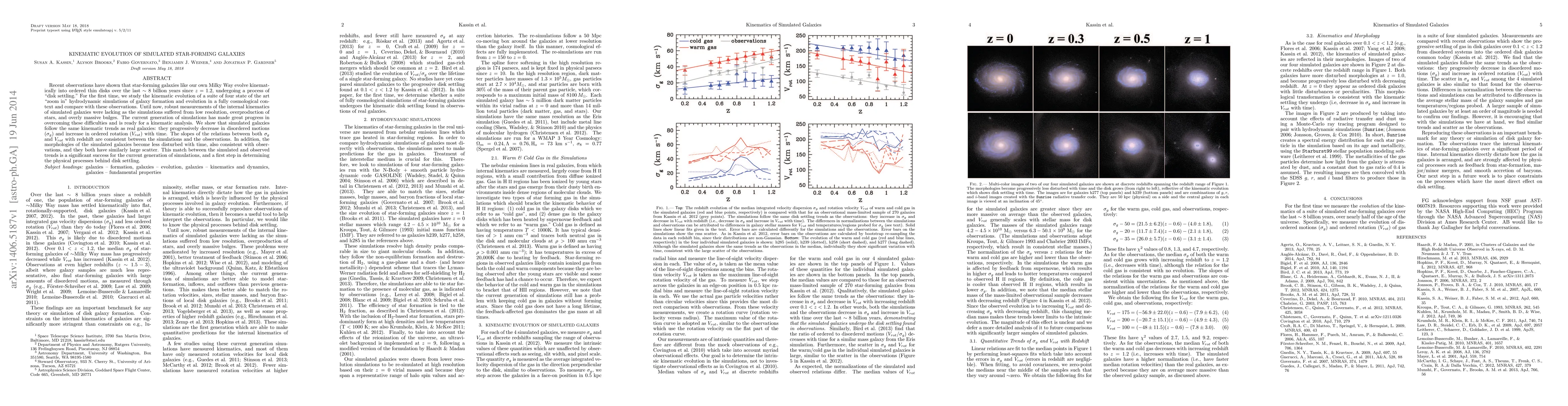 Recent observations have shown that star-forming galaxies like our own Milky Way evolve kinematically into ordered thin disks over the last ~8 billion years since z=1.2, undergoing a process of "disk settling." For the first time, we study the kinematic evolution of a suite of four state of the art "zoom in" hydrodynamic simulations of galaxy formation and evolution in a fully cosmological context and compare with these observations. Until now, robust measurements of the internal kinematics of simulated galaxies were lacking as the simulations suffered from low resolution, overproduction of stars, and overly massive bulges. The current generation of simulations has made great progress in overcoming these difficulties and is ready for a kinematic analysis. We show that simulated galaxies follow the same kinematic trends as real galaxies: they progressively decrease in disordered motions (sigma_g) and increase in ordered rotation (Vrot) with time. The slopes of the relations between both sigma_g and Vrot with redshift are consistent between the simulations and the observations. In addition, the morphologies of the simulated galaxies become less disturbed with time, also consistent with observations, and they both have similarly large scatter. This match between the simulated and observed trends is a significant success for the current generation of simulations, and a first step in determining the physical processes behind disk settling.