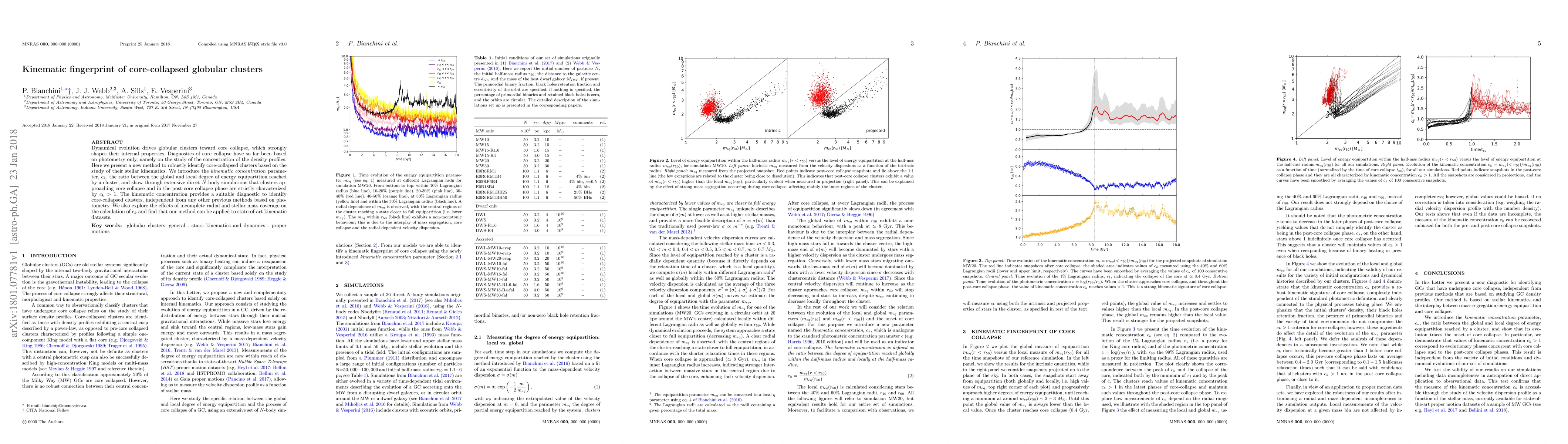 This paper introduces a new method to identify core-collapsed globular clusters using stellar kinematics, introducing the kinematic concentration parameter $c_k$. The study demonstrates that clusters approaching or in the post-core collapse phase are characterized by $c_k>1$, providing a reliable diagnostic independent of photometric methods.