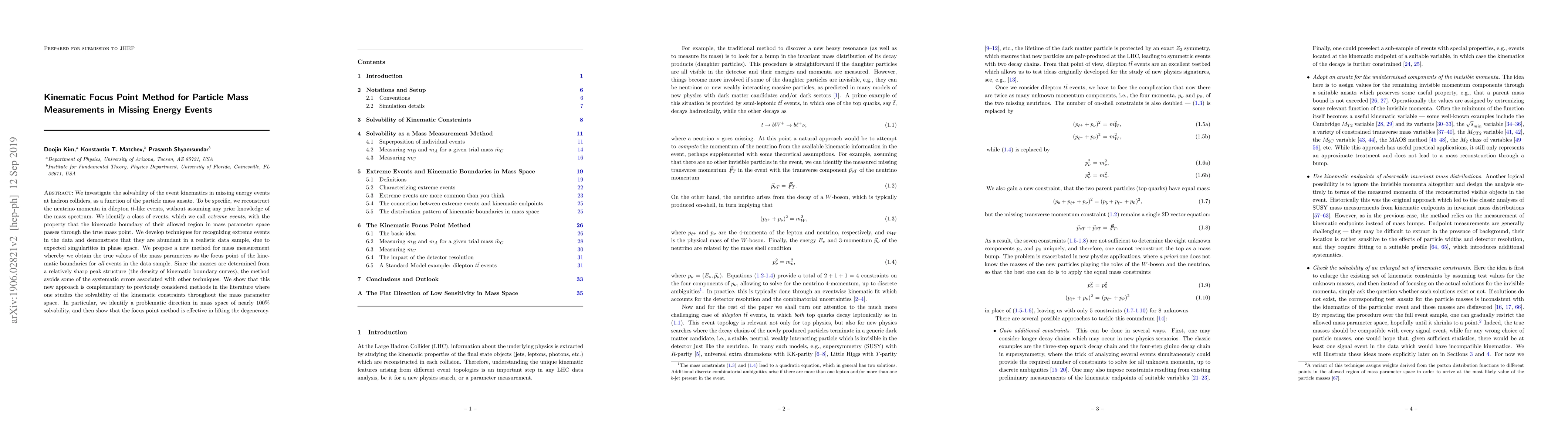 We investigate the solvability of the event kinematics in missing energy events at hadron colliders, as a function of the particle mass ansatz. To be specific, we reconstruct the neutrino momenta in dilepton $t\bar{t}$-like events, without assuming any prior knowledge of the mass spectrum. We identify a class of events, which we call extreme events, with the property that the kinematic boundary of their allowed region in mass parameter space passes through the true mass point. We develop techniques for recognizing extreme events in the data and demonstrate that they are abundant in a realistic data sample, due to expected singularities in phase space. We propose a new method for mass measurement whereby we obtain the true values of the mass parameters as the focus point of the kinematic boundaries for all events in the data sample. Since the masses are determined from a relatively sharp peak structure (the density of kinematic boundary curves), the method avoids some of the systematic errors associated with other techniques. We show that this new approach is complementary to previously considered methods in the literature where one studies the solvability of the kinematic constraints throughout the mass parameter space. In particular, we identify a problematic direction in mass space of nearly 100% solvability, and then show that the focus point method is effective in lifting the degeneracy.