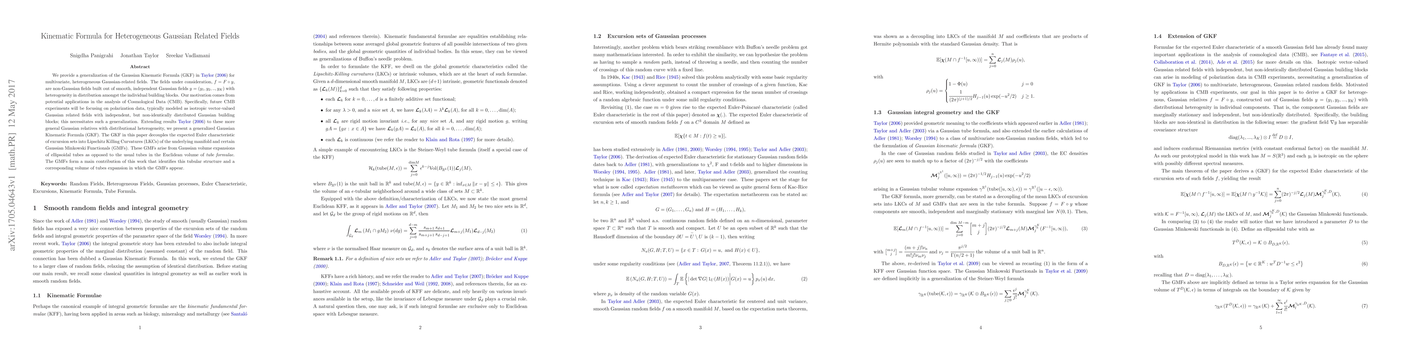 The research generalizes the Gaussian Kinematic Formula (GKF) for multivariate, heterogeneous Gaussian-related fields, extending Taylor(2006) to non-Gaussian fields built from independent Gaussian fields with heterogeneous distributions.