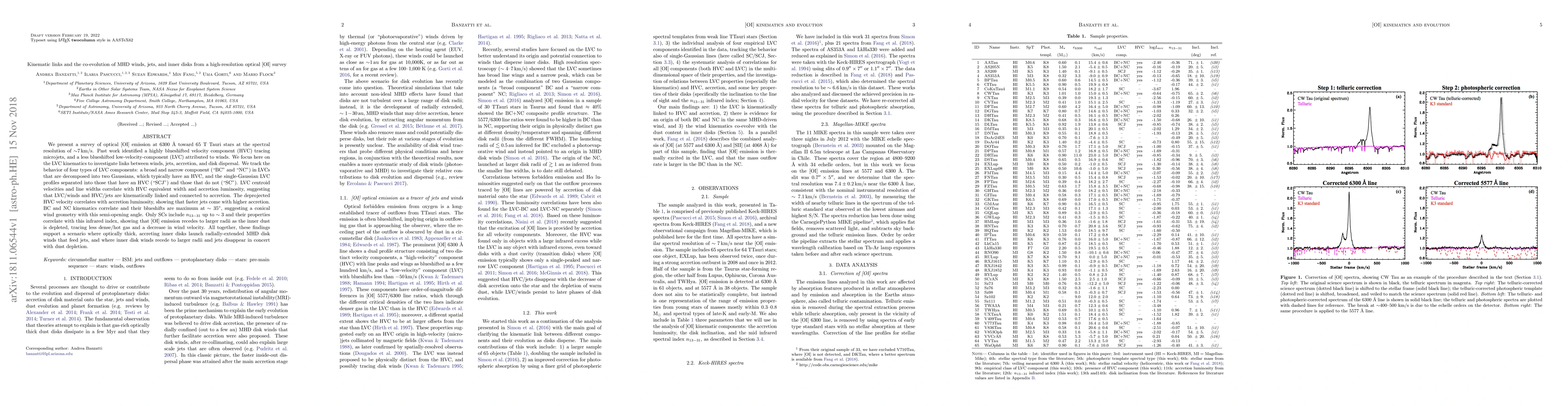 A survey of 65 T-Tauri stars found kinematic links between MHD winds, jets, and inner disks, suggesting that accretion drives jet formation and that wind velocity increases with accretion.