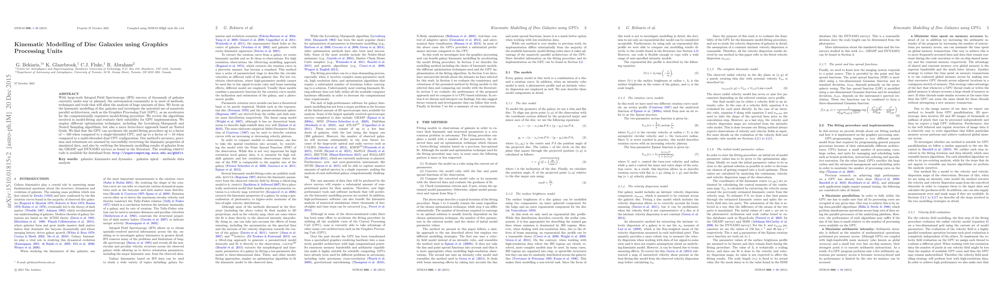 This paper investigates the use of Graphics Processing Units (GPUs) to accelerate the computationally intensive kinematic modelling of disc galaxies, finding that GPUs can speed up the model-fitting process by up to 100 times compared to single-threaded CPUs. The study validates the method's accuracy and robustness through simulated data and existing survey results.