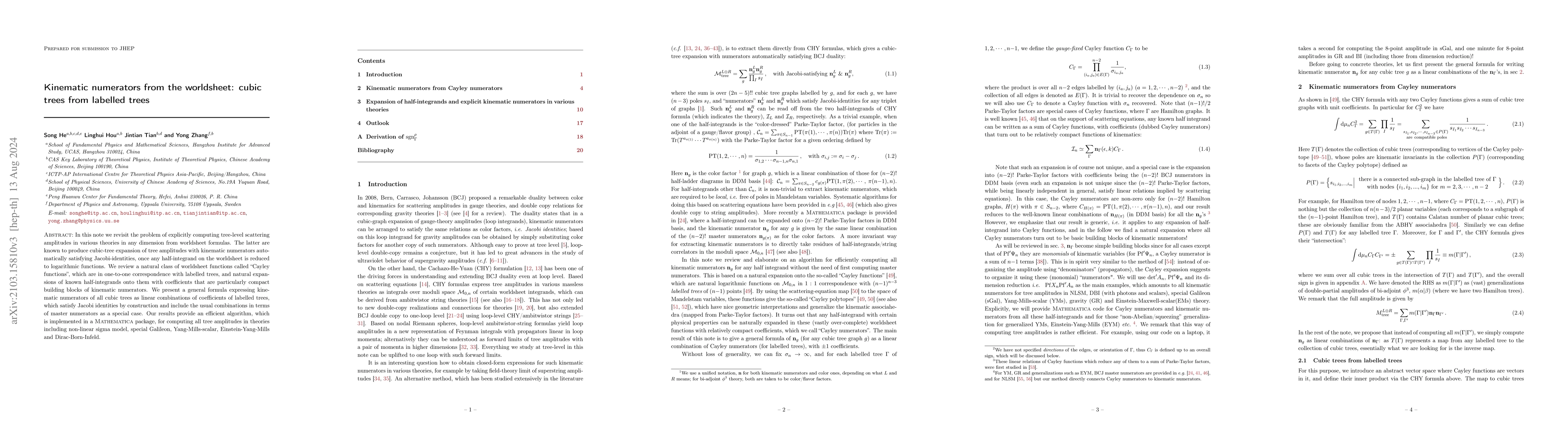 In this note we revisit the problem of explicitly computing tree-level scattering amplitudes in various theories in any dimension from worldsheet formulas. The latter are known to produce cubic-tree expansion of tree amplitudes with kinematic numerators automatically satisfying Jacobi-identities, once any half-integrand on the worldsheet is reduced to logarithmic functions. We review a natural class of worldsheet functions called "Cayley functions", which are in one-to-one correspondence with labelled trees, and natural expansions of known half-integrands onto them with coefficients that are particularly compact building blocks of kinematic numerators. We present a general formula expressing kinematic numerators of all cubic trees as linear combinations of coefficients of labelled trees, which satisfy Jacobi identities by construction and include the usual combinations in terms of master numerators as a special case. Our results provide an efficient algorithm, which is implemented in a Mathematica package, for computing all tree amplitudes in theories including non-linear sigma model, special Galileon, Yang-Mills-scalar, Einstein-Yang-Mills and Dirac-Born-Infeld.