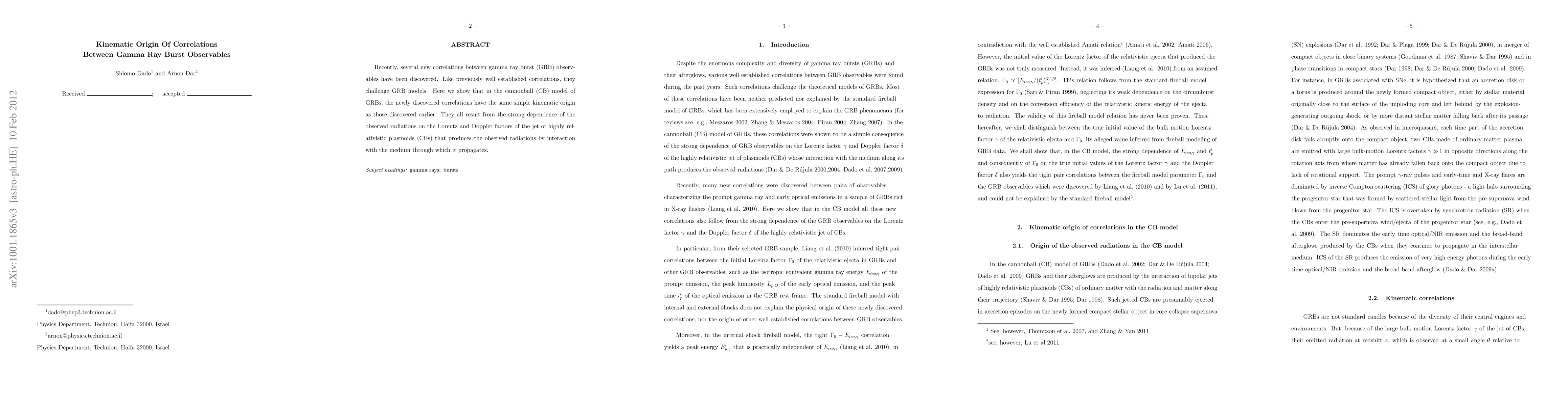 This research explains new gamma ray burst (GRB) observable correlations through the cannonball model, showing they stem from the same kinematic origin as earlier discovered correlations. The correlations arise from the radiation's dependence on the Lorentz and Doppler factors of relativistic plasmoids (cannonballs) interacting with their medium.