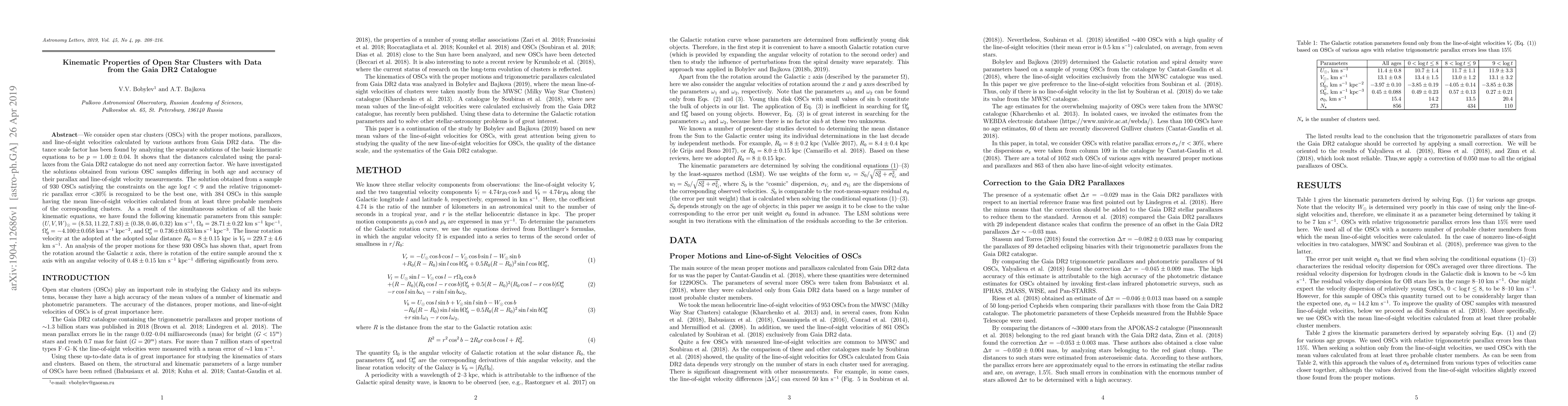 This study uses Gaia DR2 data to calculate kinematic properties of open star clusters, finding a distance scale factor and rotation velocity around the Galactic x-axis.
