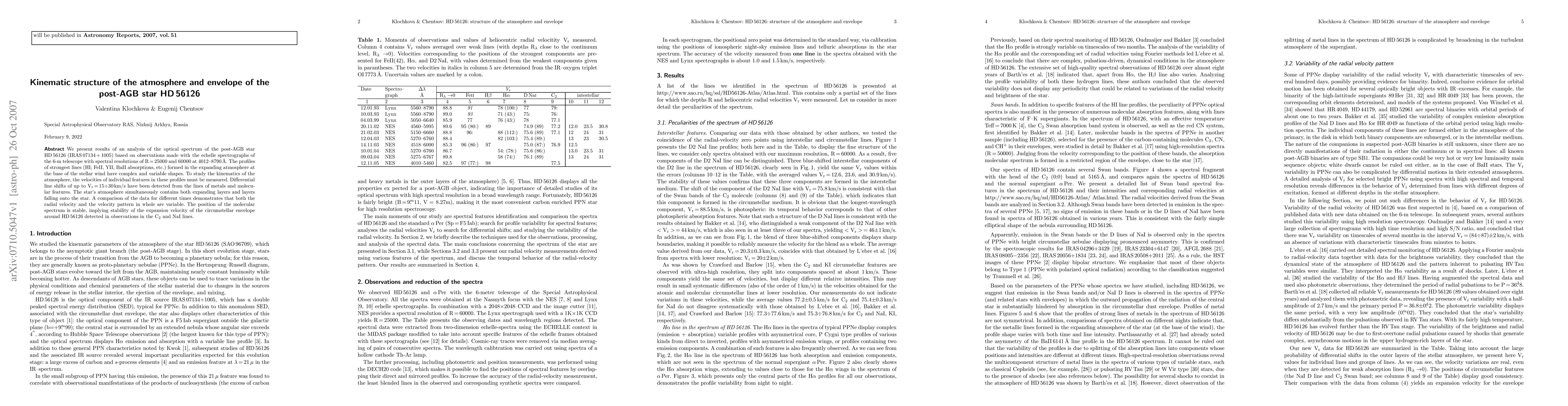 The post-AGB star HD56126 has an expanding atmosphere with complex velocity profiles, indicating both outward expansion and falling material. The study reveals variable radial velocities and dynamic kinematics in the star's envelope.
