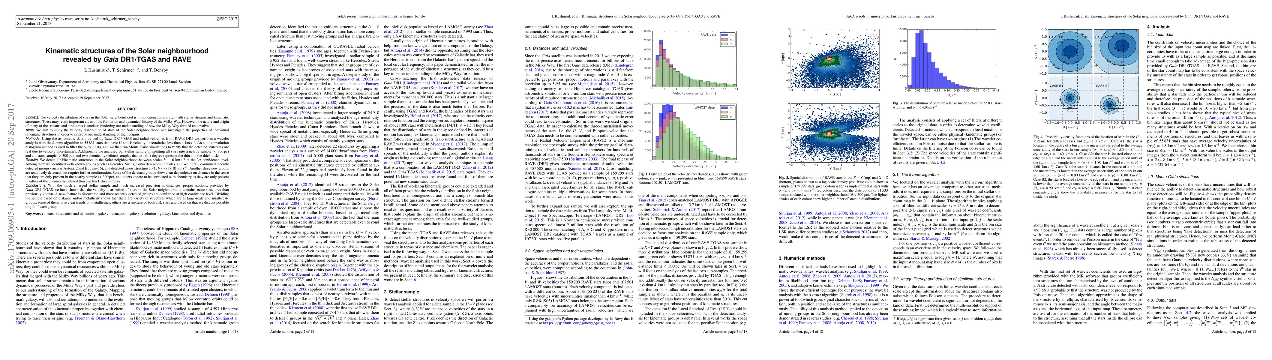 This paper uses Gaia DR1/TGAS and RAVE data to analyze the kinematic structures in the Solar neighbourhood, revealing a more complex velocity distribution with numerous stellar streams and groups. The study confirms the presence of previously detected groups and discovers new structures, suggesting diverse origins linked to the Milky Way's formation and evolution.