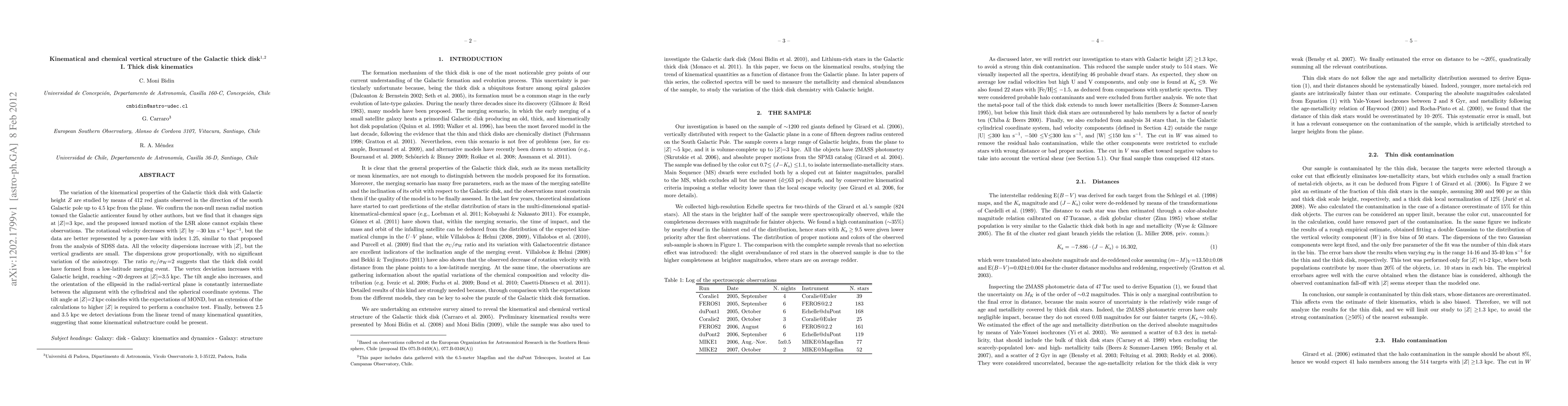 The paper presents detailed kinematic measurements of the Galactic thick disk, including radial velocities, rotational velocities, and velocity dispersions as a function of Galactic height.