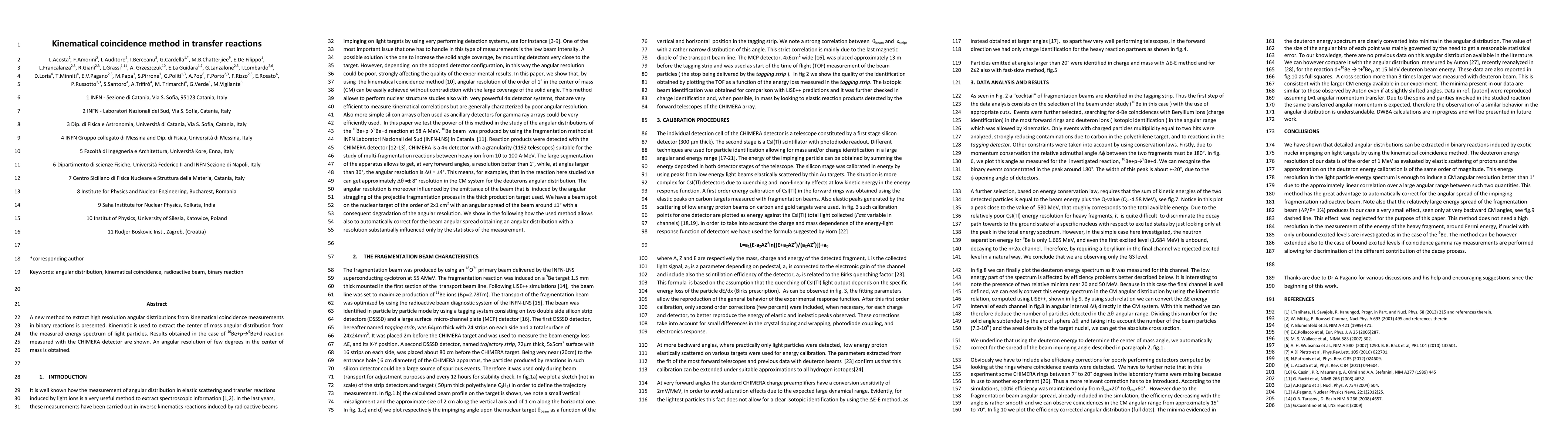 A new method to extract high resolution angular distributions from kinematical coincidence measurements in binary reactions is presented. Kinematic is used to extract the center of mass angular distribution from the measured energy spectrum of light particles. Results obtained in the case of 10Be+p-->9Be+d reaction measured with the CHIMERA detector are shown. An angular resolution of few degrees in the center of mass is obtained.
