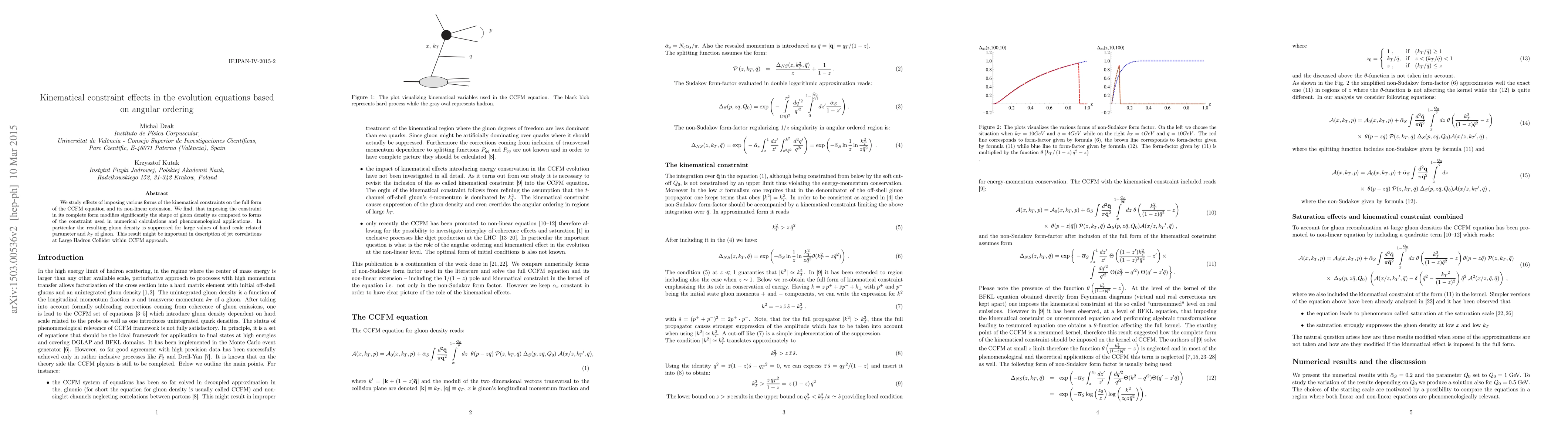 This paper investigates the impact of kinematical constraints on the CCFM equation and its non-linear extension, revealing that the complete constraint significantly alters gluon density, particularly suppressing it for large hard scale and kT values. This finding could enhance jet correlation studies at the Large Hadron Collider using the CCFM approach.