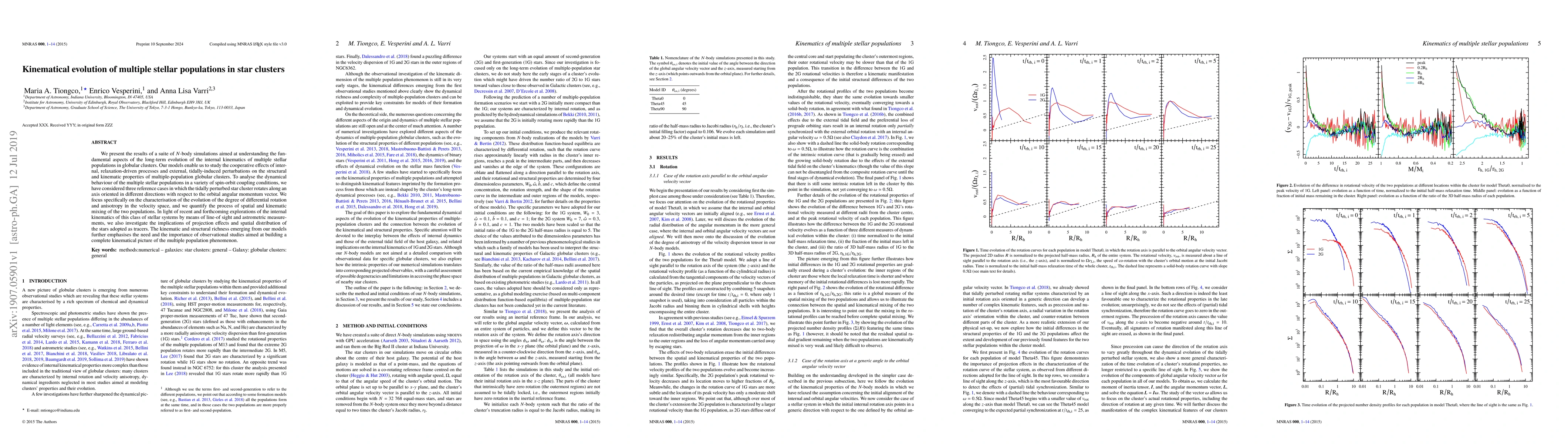 This study uses N-body simulations to investigate the long-term kinematic evolution of multiple stellar populations in globular clusters, focusing on differential rotation, velocity anisotropy, and the effects of tidal perturbations. The research highlights the importance of observational studies to fully understand the complex kinematical dynamics in these stellar systems.