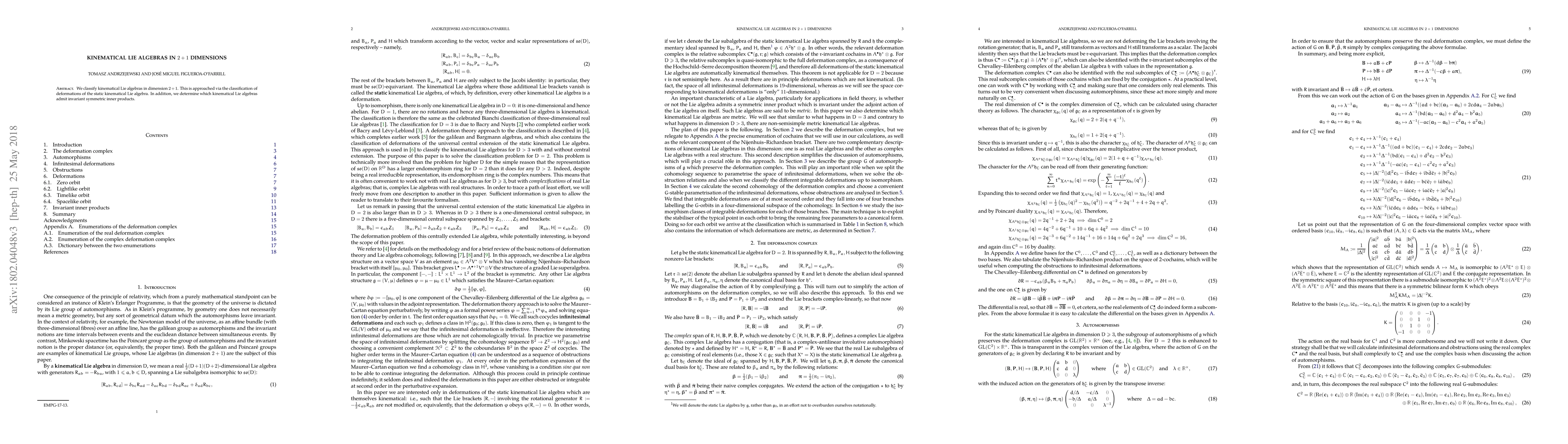 Summary: This paper classifies 2+1-dimensional kinematical Lie algebras through deformations of the static algebra and identifies which of these algebras support invariant symmetric inner products. The findings provide a comprehensive understanding of the structure and properties of these algebras.