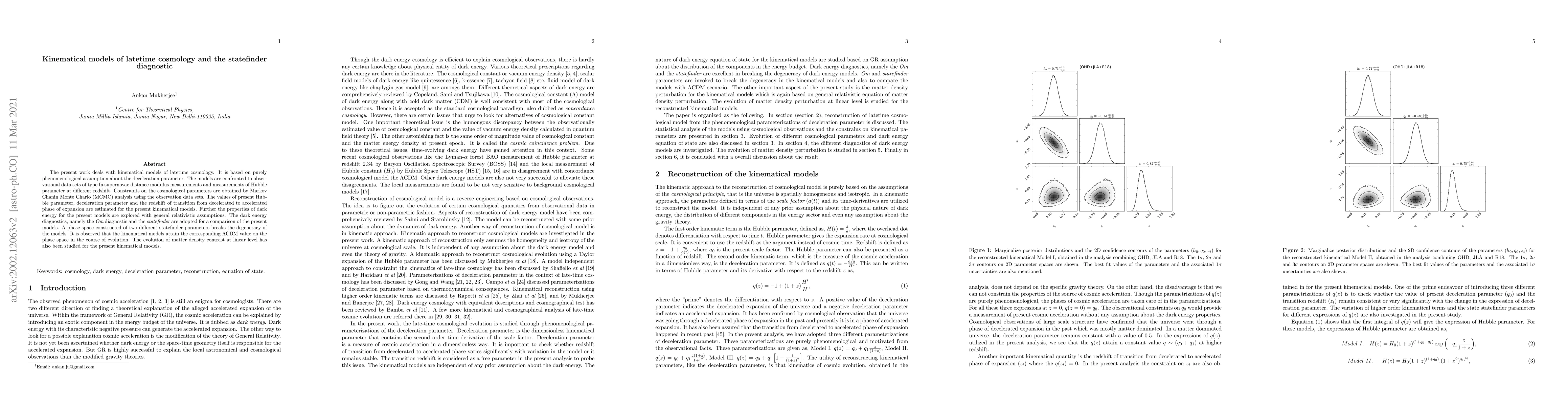 This paper explores kinematical models of late-time cosmology based on phenomenological assumptions about the deceleration parameter, comparing them to observational data. It uses MCMC analysis to estimate cosmological parameters and employs the Om diagnostic and statefinder to analyze dark energy properties, finding that the models converge to ΛCDM values over time.