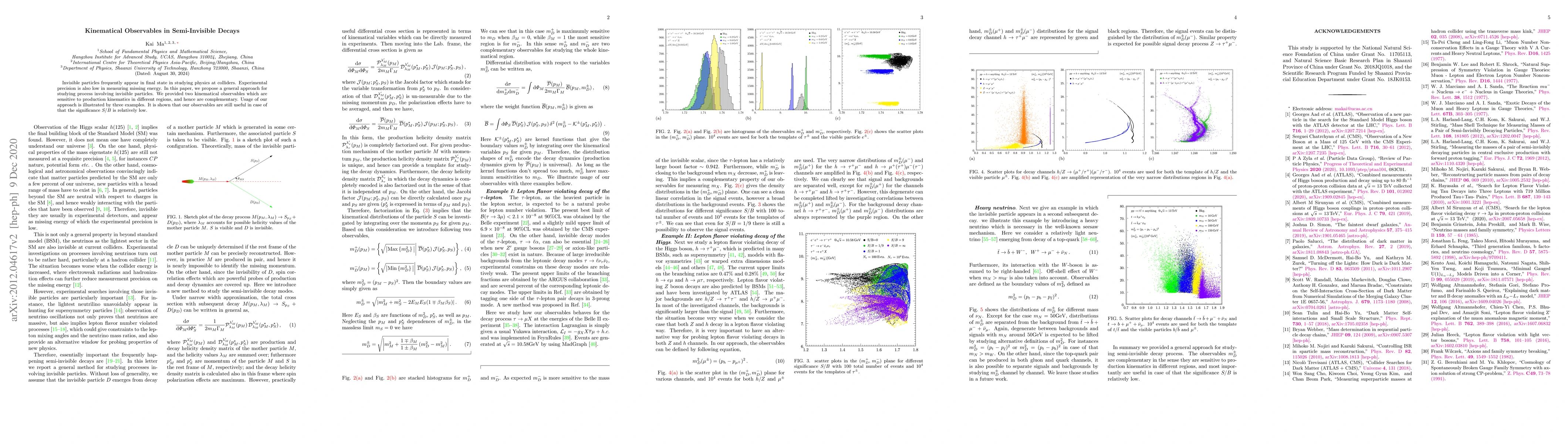 Invisible particles frequently appear in final state in studying physics at colliders. Experimental precision is also low in measuring missing energy. In this paper, we propose a general approach for studying process involving invisible particles. We provided two kinematical observables which are sensitive to production kinematics in different regions, and hence are complementary. Usage of our approach is illustrated by three examples. It is shown that our observables are still useful in case of that the significance S/B is relatively low.