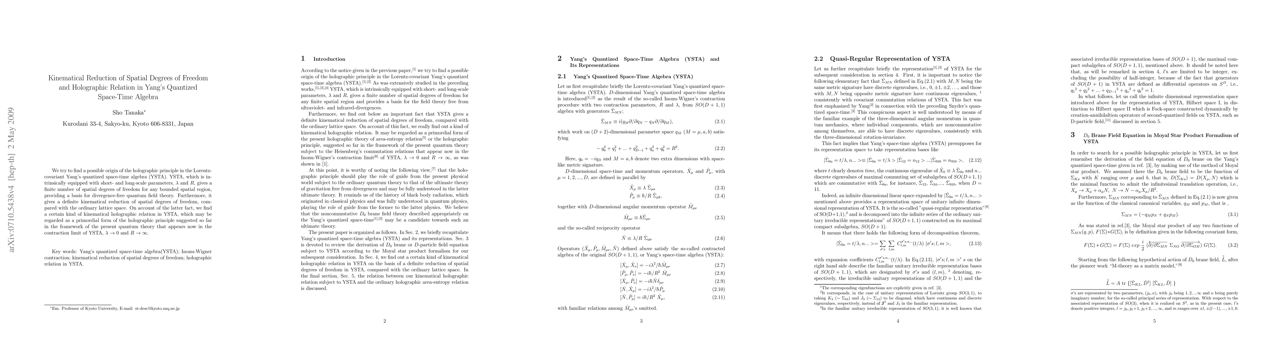 This paper explores the origin of the holographic principle in Yang's quantized space-time algebra (YSTA), which reduces spatial degrees of freedom and provides a finite number of degrees for bounded regions. It identifies a kinematical holographic relation in YSTA, suggesting a primordial form of the holographic principle emerging in the contraction limit.