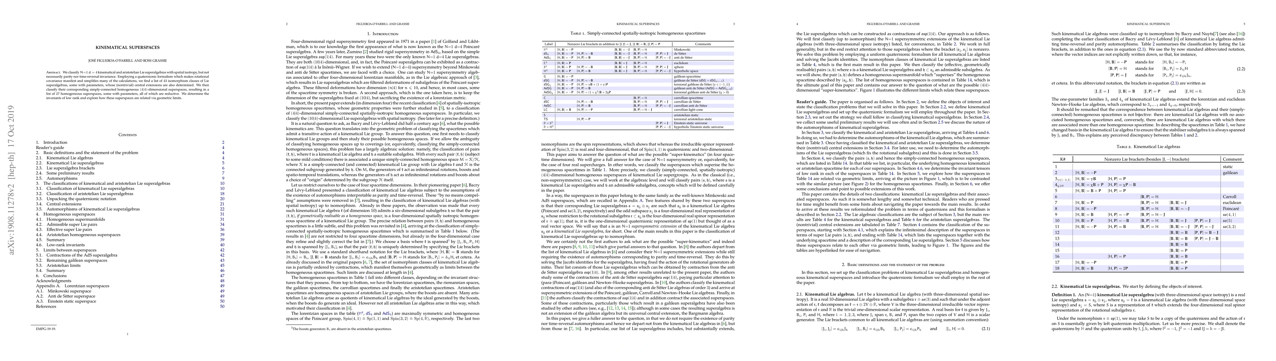We classify $N{=}1$ $d=4$ kinematical and aristotelian Lie superalgebras with spatial isotropy, but not necessarily parity nor time-reversal invariance. Employing a quaternionic formalism which makes rotational covariance manifest and simplifies many of the calculations, we find a list of $43$ isomorphism classes of Lie superalgebras, some with parameters, whose (nontrivial) central extensions are also determined. We then classify their corresponding simply-connected homogeneous $(4|4)$-dimensional superspaces, resulting in a list of $27$ homogeneous superspaces, some with parameters, all of which are reductive. We determine the invariants of low rank and explore how these superspaces are related via geometric limits.