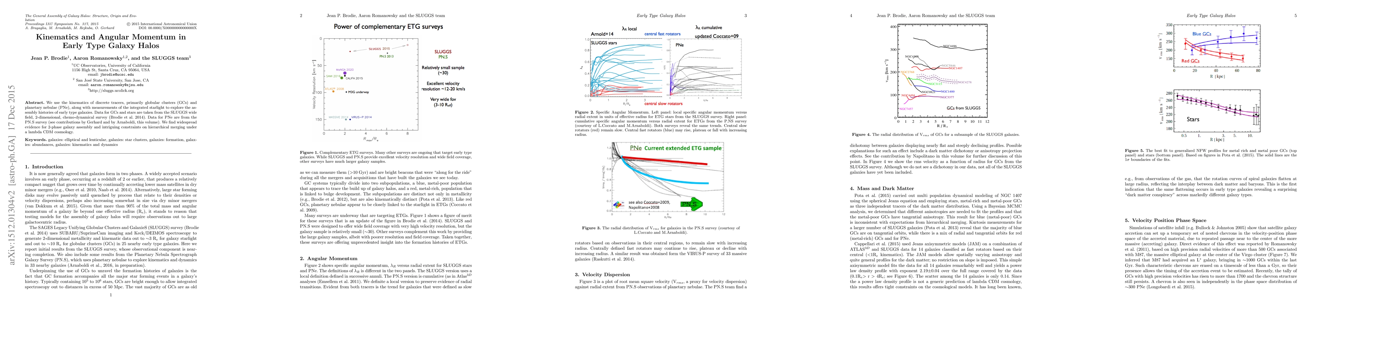 We use the kinematics of discrete tracers, primarily globular clusters (GCs) and planetary nebulae (PNe), along with measurements of the integrated starlight to explore the assembly histories of early type galaxies. Data for GCs and stars are taken from the SLUGGS wide field, 2-dimensional, chemo-dynamical survey (Brodie et al. 2014). Data for PNe are from the PN.S survey (see contributions by Gerhard and by Arnaboldi, this volume). We find widespread evidence for 2-phase galaxy assembly and intriguing constraints on hierarchical merging under a lambda CDM cosmology.