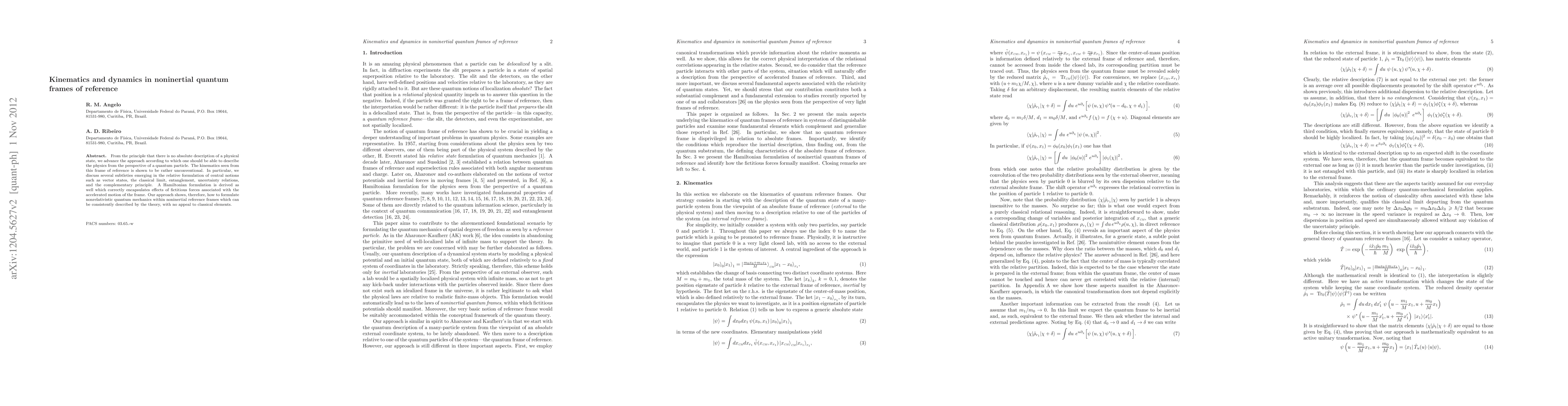 From the principle that there is no absolute description of a physical state, we advance the approach according to which one should be able to describe the physics from the perspective of a quantum particle. The kinematics seen from this frame of reference is shown to be rather unconventional. In particular, we discuss several subtleties emerging in the relative formulation of central notions such as vector states, the classical limit, entanglement, uncertainty relations, and the complementary principle. A Hamiltonian formulation is derived as well which correctly encapsulates effects of fictitious forces associated with the accelerated motion of the frame. Our approach shows, therefore, how to formulate nonrelativistic quantum mechanics within noninertial reference frames which can be consistently described by the theory, with no appeal to classical elements.