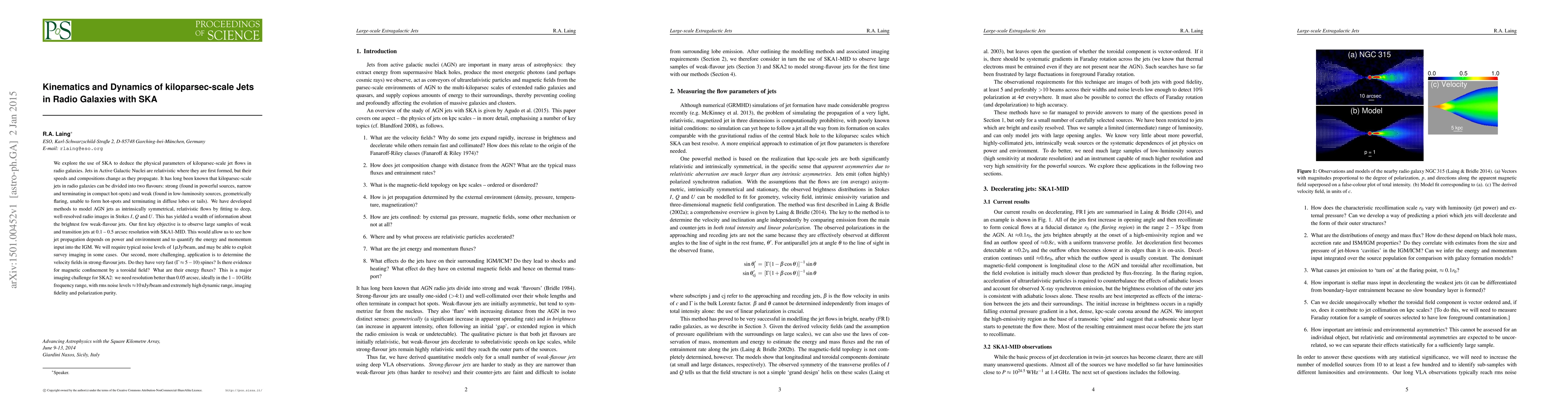 This study aims to explore kiloparsec-scale jets in radio galaxies using the Square Kilometre Array (SKA), focusing on their kinematics and dynamics, and how they depend on power and environment.