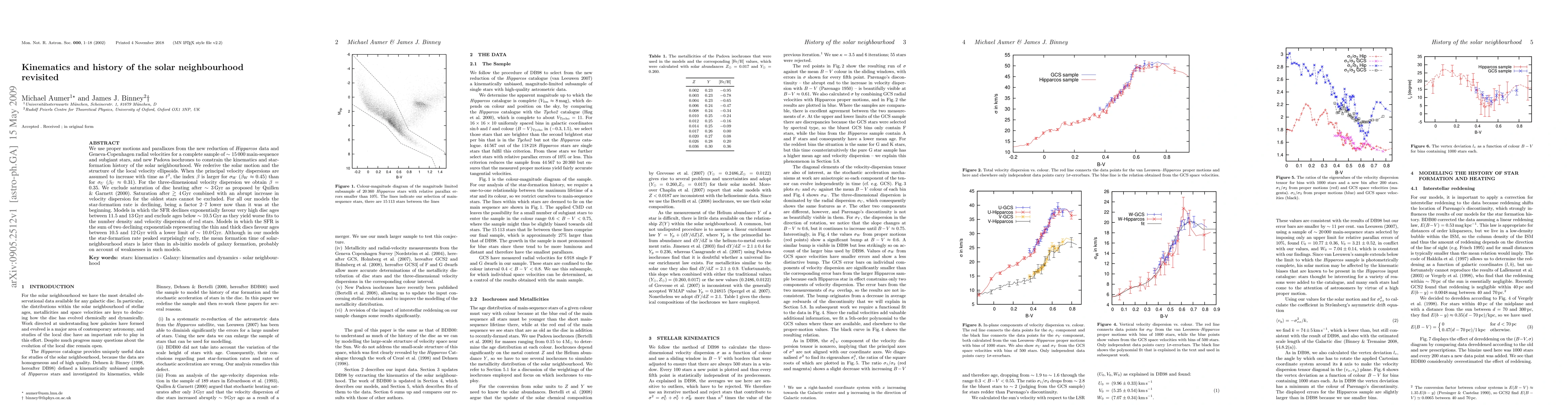 A study of 15,000 stars in the solar neighborhood reveals that star formation is declining over time, with ages of the thin and thick discs favoring between 10-13 Gyr. The study also finds that the solar motion and local velocity ellipsoids have changed over time.