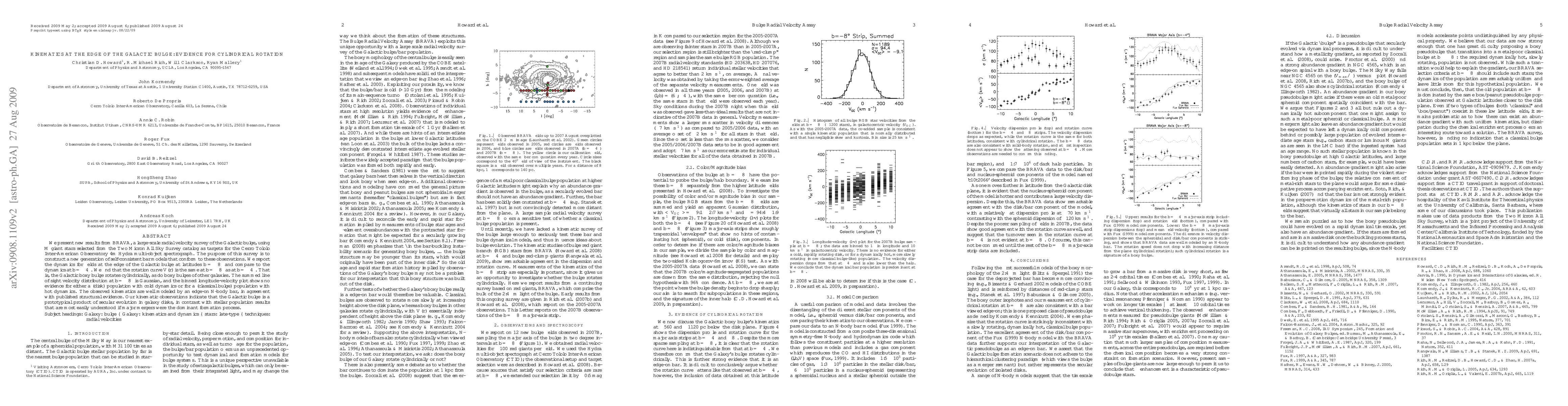 We present new results from BRAVA, a large scale radial velocity survey of the Galactic bulge, using M giant stars selected from the Two Micron All Sky Survey catalogue as targets for the Cerro Tololo Inter-American Observatory 4m Hydra multi-object spectrograph. The purpose of this survey is to construct a new generation of self-consistent bar models that conform to these observations. We report the dynamics for fields at the edge of the Galactic bulge at latitudes b=-8 deg. and compare to the dynamics at b=-4 deg. We find that the rotation curve V(r) is the same at b=-8 deg. as at b=-4 deg. That is, the Galactic boxy bulge rotates cylindrically, as do boxy bulges of other galaxies. The summed line of sight velocity distribution at b=-8 deg. is Gaussian, and the binned longitude-velocity plot shows no evidence for either a (disk) population with cold dynamics or for a (classical bulge) population with hot dynamics. The observed kinematics are well modeled by an edge-on N-body bar, in agreement with published structural evidence. Our kinematic observations indicate that the Galactic bulge is a prototypical product of secular evolution in galaxy disks, in contrast with stellar population results that are most easily understood if major mergers were the dominant formation process.