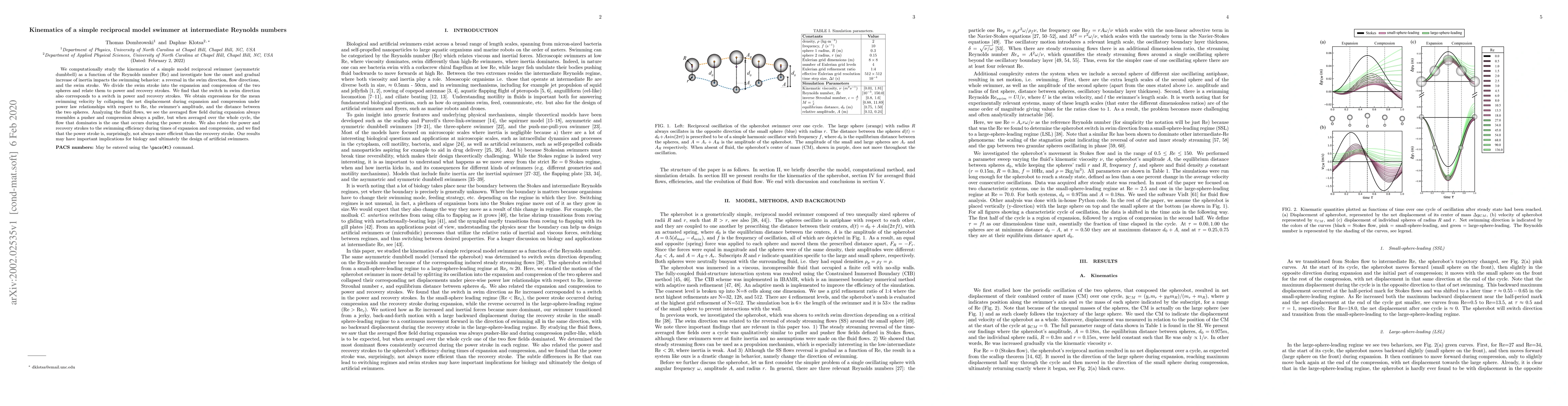 This paper computationally examines the kinematic behavior of a simple reciprocal swimmer model at varying Reynolds numbers, revealing how inertia influences swimming direction, stroke types, and efficiency. The study finds that the power stroke is not always more efficient than the recovery stroke, with implications for biological and artificial swimmer design.