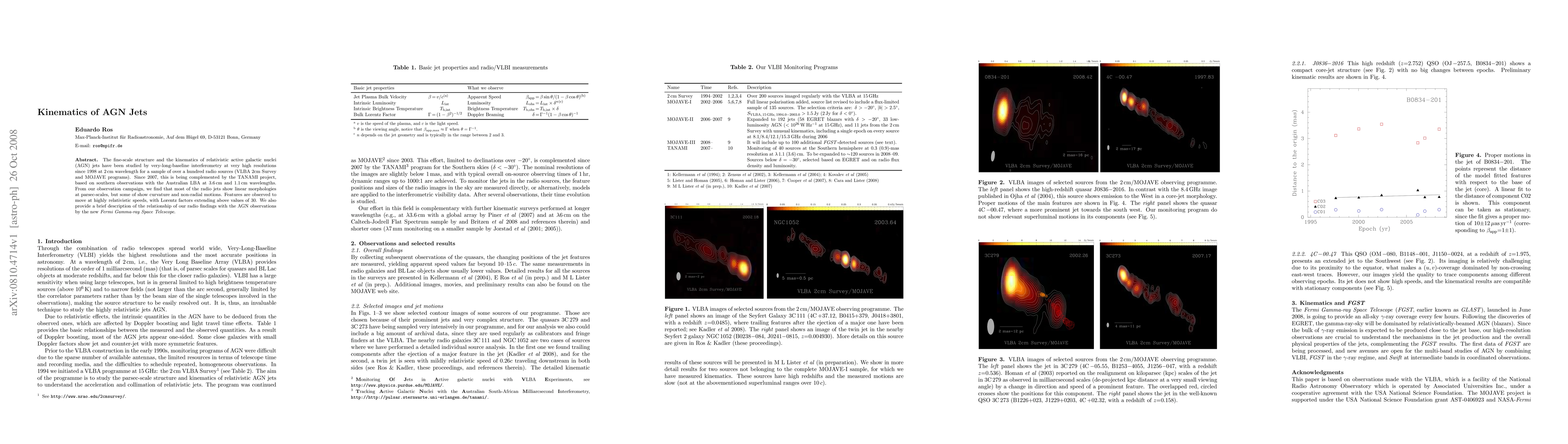 Research using very-long-baseline interferometry found that most AGN jets exhibit linear morphologies at small scales, while some show curvature and high-speed motions with Lorentz factors above 30.