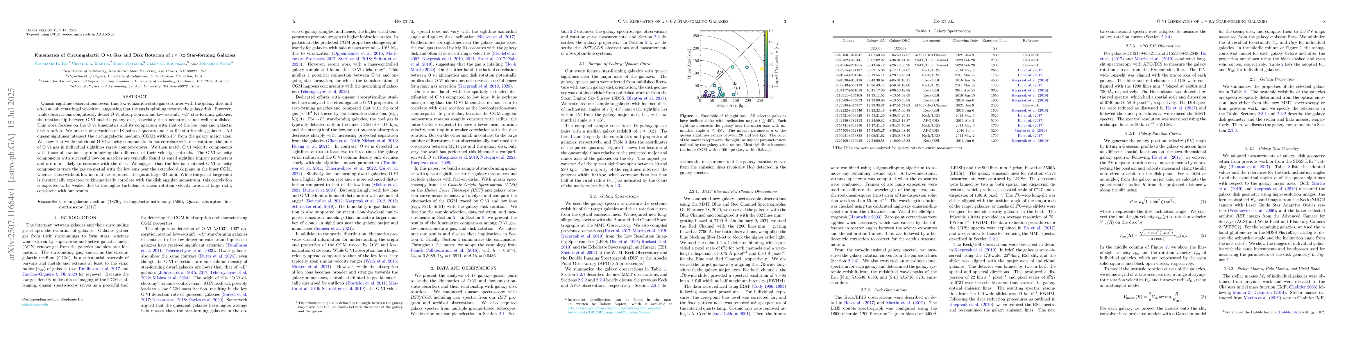 Quasar sightline observations reveal that low-ionization-state gas corotates with the galaxy disk and often at sub-centrifugal velocities, suggesting that the gas is spiraling towards the galaxy disk. However, while observations ubiquitously detect O VI absorption around low-redshift, $\sim L^*$ star-forming galaxies, the relationship between O VI and the galaxy disk, especially the kinematics, is not well-established. This work focuses on the O VI kinematics and its comparison with that of the low ions and galactic disk rotation. We present observations of 18 pairs of quasars and $z\approx0.2$ star-forming galaxies. All quasar sightlines intersect the circumgalactic medium (CGM) within 45$^\circ$ from the galaxy major axes. We show that while individual O VI velocity components do not correlate with disk rotation, the bulk of O VI gas in individual sightlines rarely counter-rotates. We then match O VI velocity components with those of low ions by minimizing the difference of their velocity centroids. The O VI velocity components with successful low-ion matches are typically found at small sightline impact parameters and are more likely to corotate with the disk. We suggest that the low-ion-matched O VI velocity components trace the gas co-spatial with the low ions near the extended disk plane in the inner CGM, whereas those without low-ion matches represent the gas at large 3D radii. While the gas at large radii is theoretically expected to kinematically correlate with the disk angular momentum, this correlation is expected to be weaker due to the higher turbulent to mean rotation velocity ration at large radii, consistent with our results.