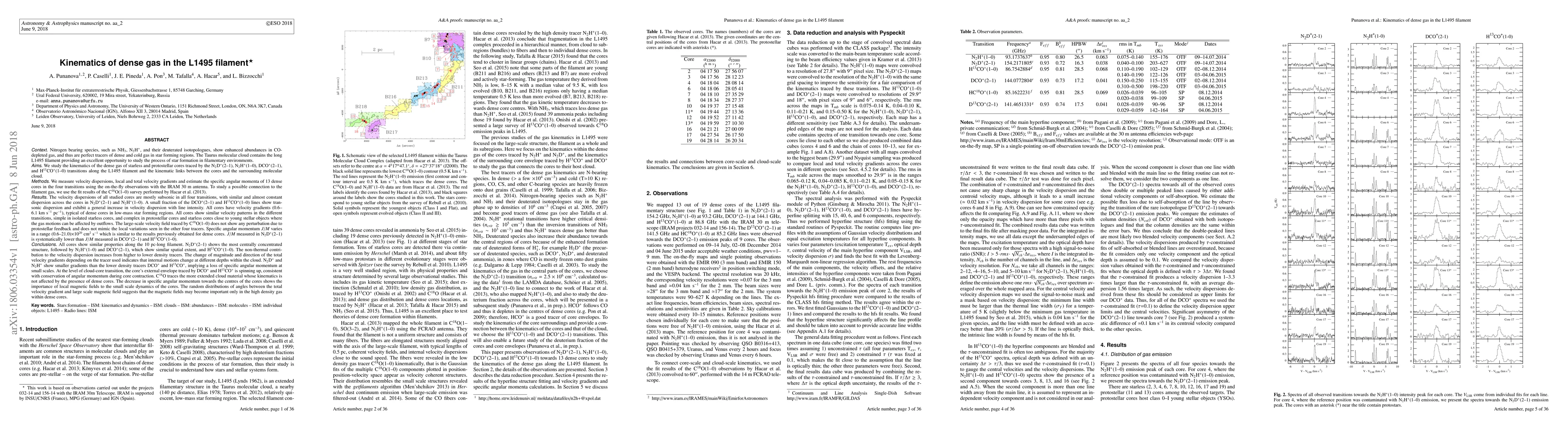 We study the kinematics of the dense gas of starless and protostellar cores traced by the N2D+(2-1), N2H+(1-0), DCO+(2-1), and H13CO+(1-0) transitions along the L1495 filament and the kinematic links between the cores and the surrounding molecular cloud. We measure velocity dispersions, local and total velocity gradients and estimate the specific angular momenta of 13 dense cores in the four transitions using the on-the-fly observations with the IRAM 30 m antenna. To study a possible connection to the filament gas, we use the fit results of the C18O(1-0) survey performed by Hacar et al. (2013). All cores show similar properties along the 10 pc-long filament. N2D+(2-1) shows the most centrally concentrated structure, followed by N2H+(1-0) and DCO+(2-1), which show similar spatial extent, and H13CO+(1-0). The non-thermal contribution to the velocity dispersion increases from higher to lower density tracers. The change of magnitude and direction of the total velocity gradients depending on the tracer used indicates that internal motions change at different depths within the cloud. N2D+ and N2H+ show smaller gradients than the lower density tracers DCO+ and H13CO+, implying a loss of specific angular momentum at small scales. At the level of cloud-core transition, the core's external envelope traced by DCO+ and H13CO+ is spinning up, consistent with conservation of angular momentum during core contraction. C18O traces the more extended cloud material whose kinematics is not affected by the presence of dense cores. The decrease in specific angular momentum towards the centres of the cores shows the importance of local magnetic fields to the small scale dynamics of the cores. The random distributions of angles between the total velocity gradient and large scale magnetic field suggests that the magnetic fields may become important only in the high density gas within dense cores.
