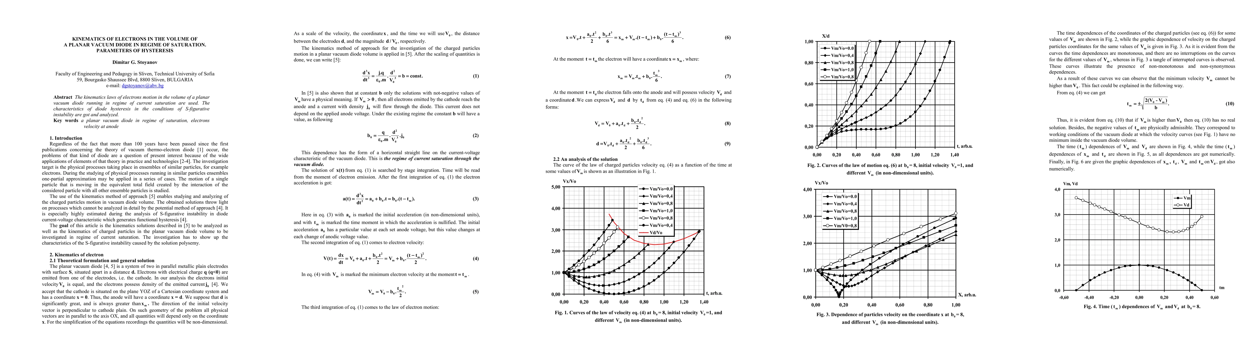 The kinematics laws of electrons motion in the volume of a planar vacuum diode running in regime of current saturation are used. The characteristics of diode hysteresis in the conditions of S-figurative instability are got and analyzed.
